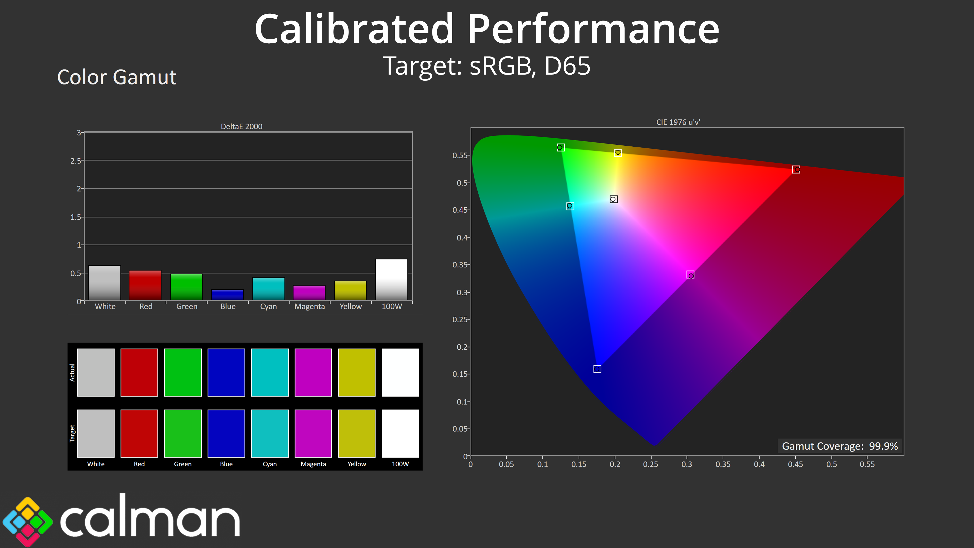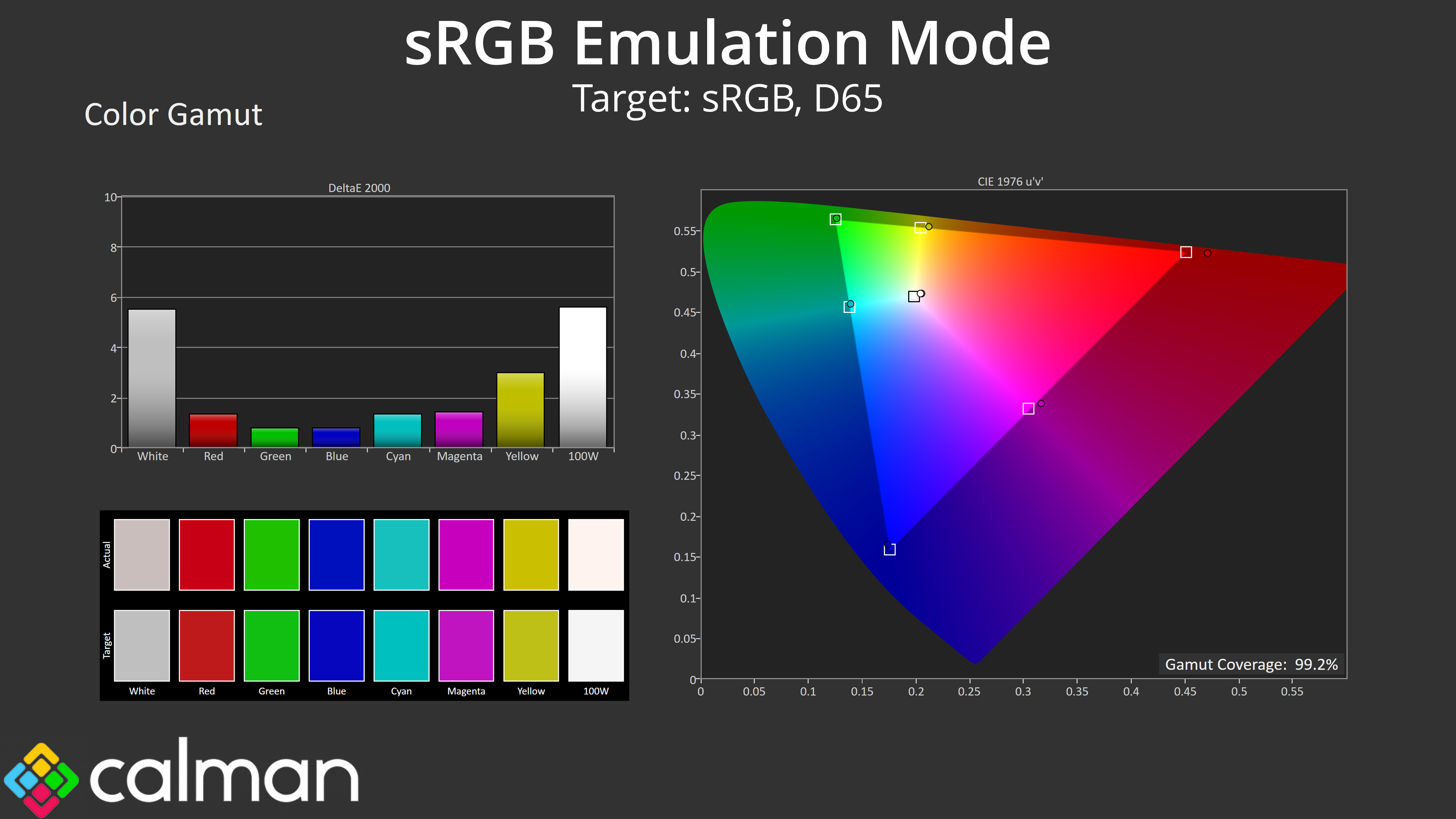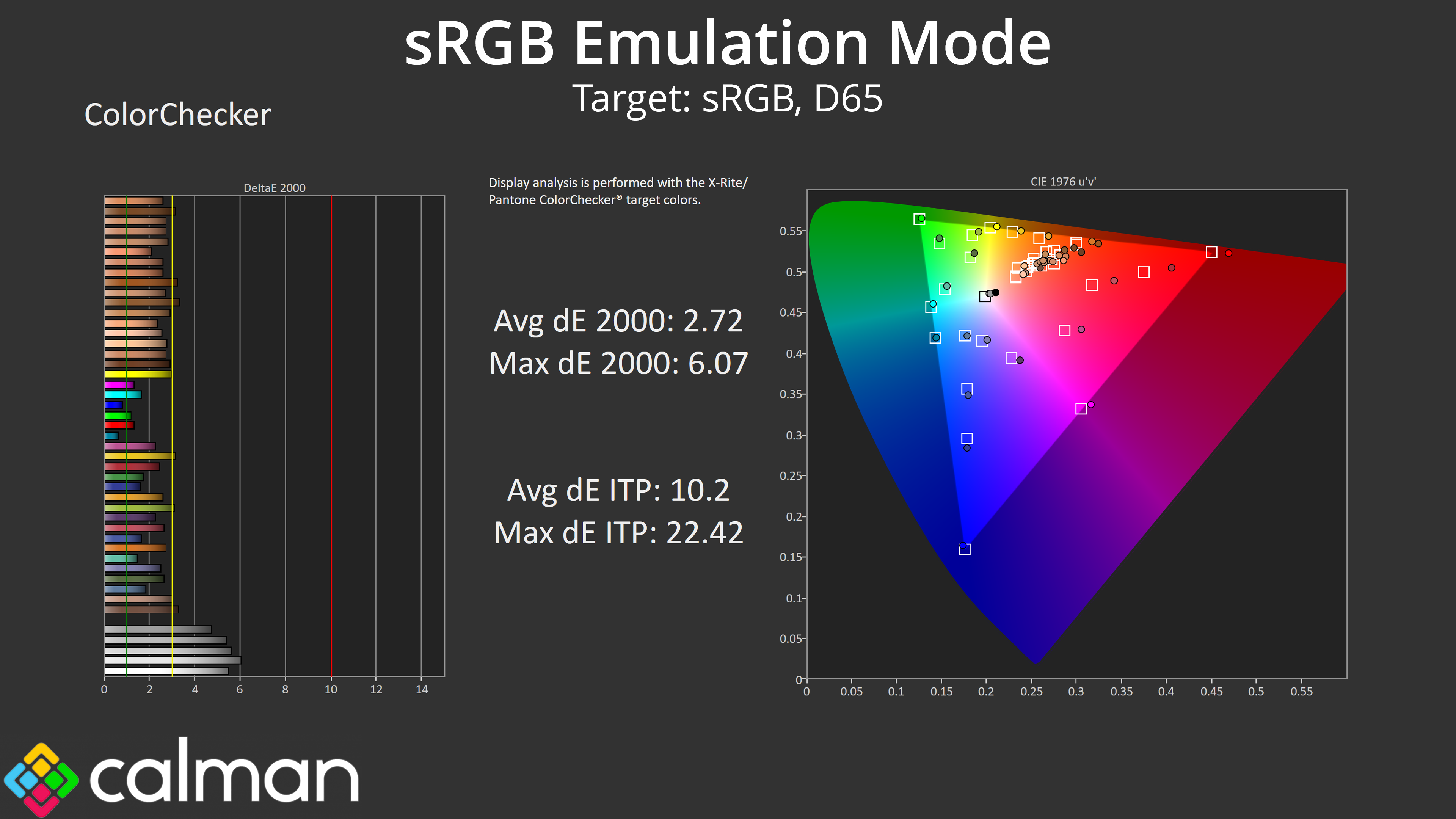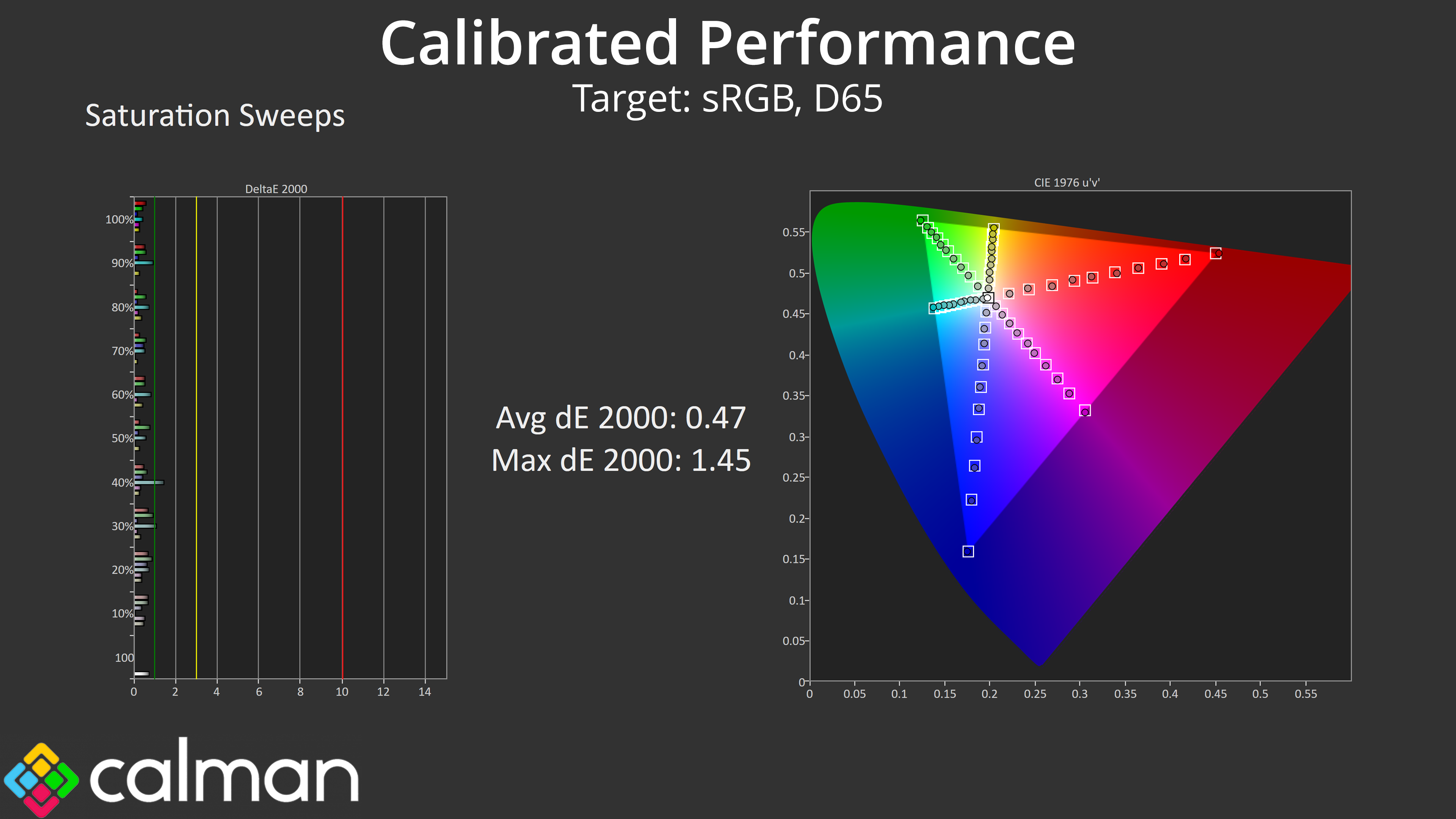 Relative to DCI-P3, it is better, but accuracy still isn't great, with an average dE 2000 of 3.26.