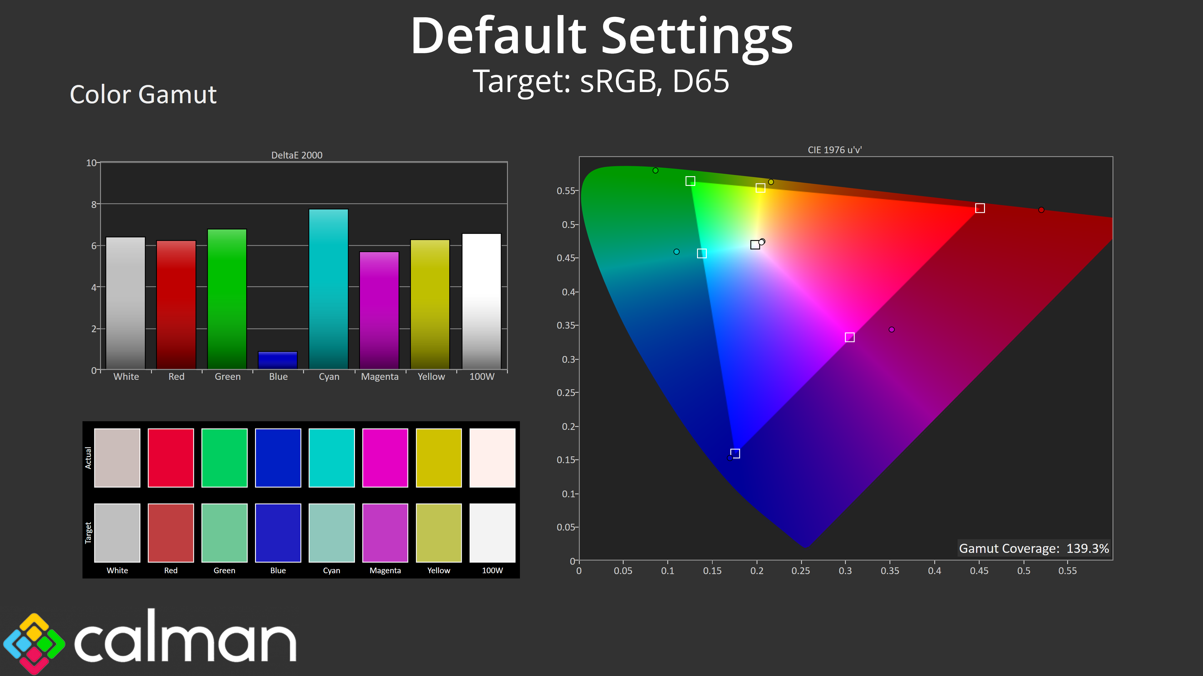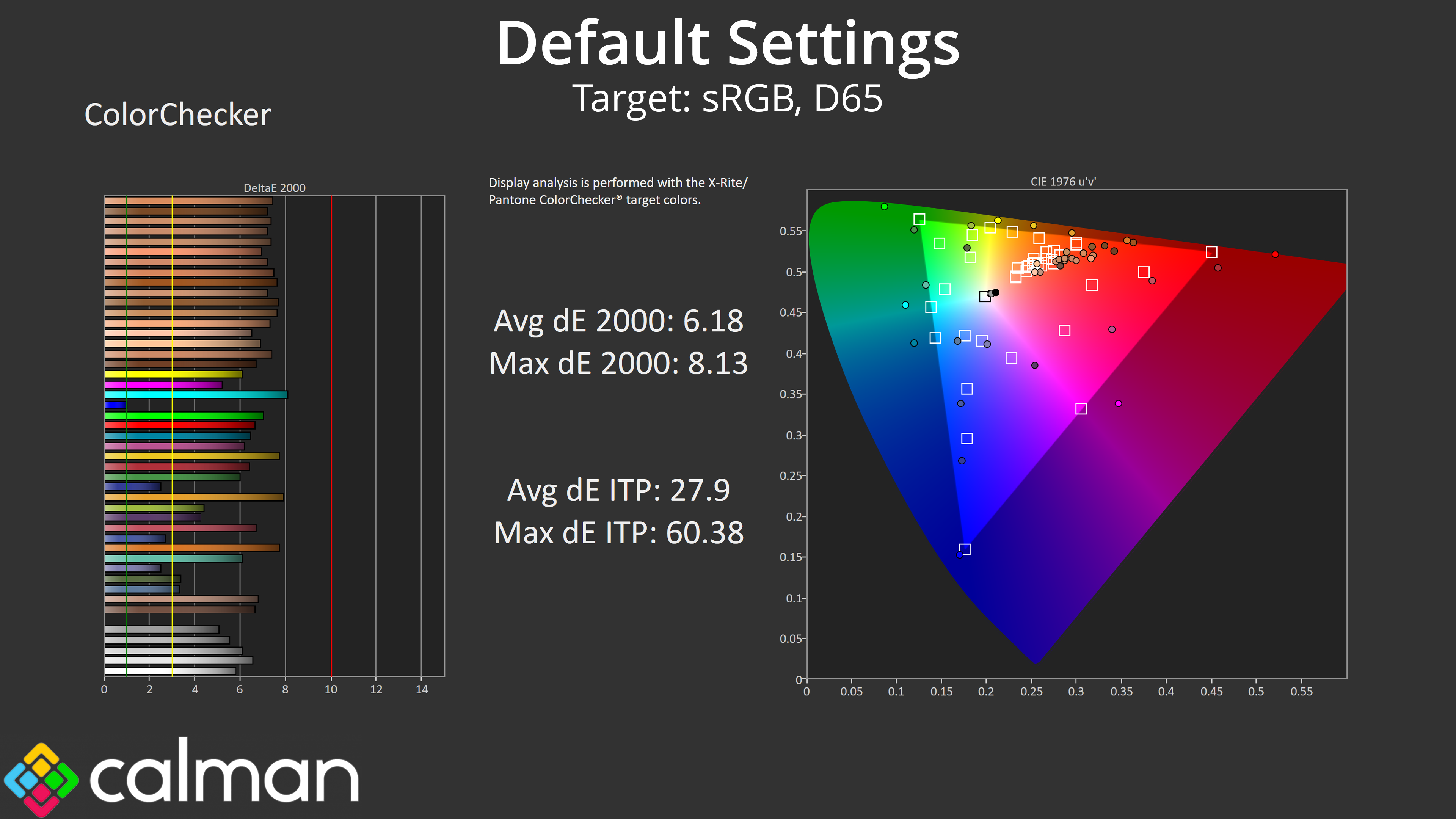 That has a knock on effect for colour accuracy, which is understandably poor using out of the box settings when targeting the sRGB space.