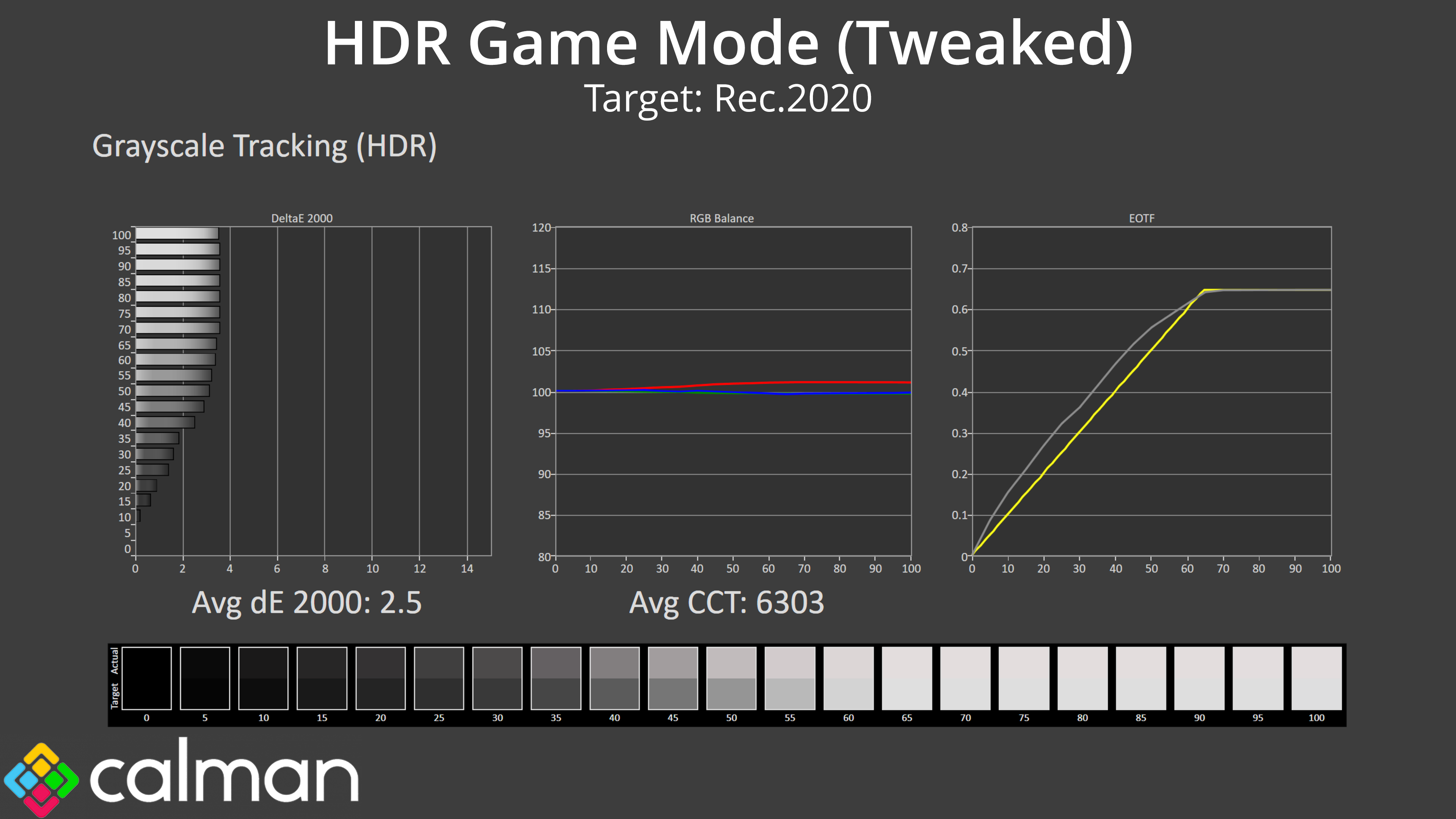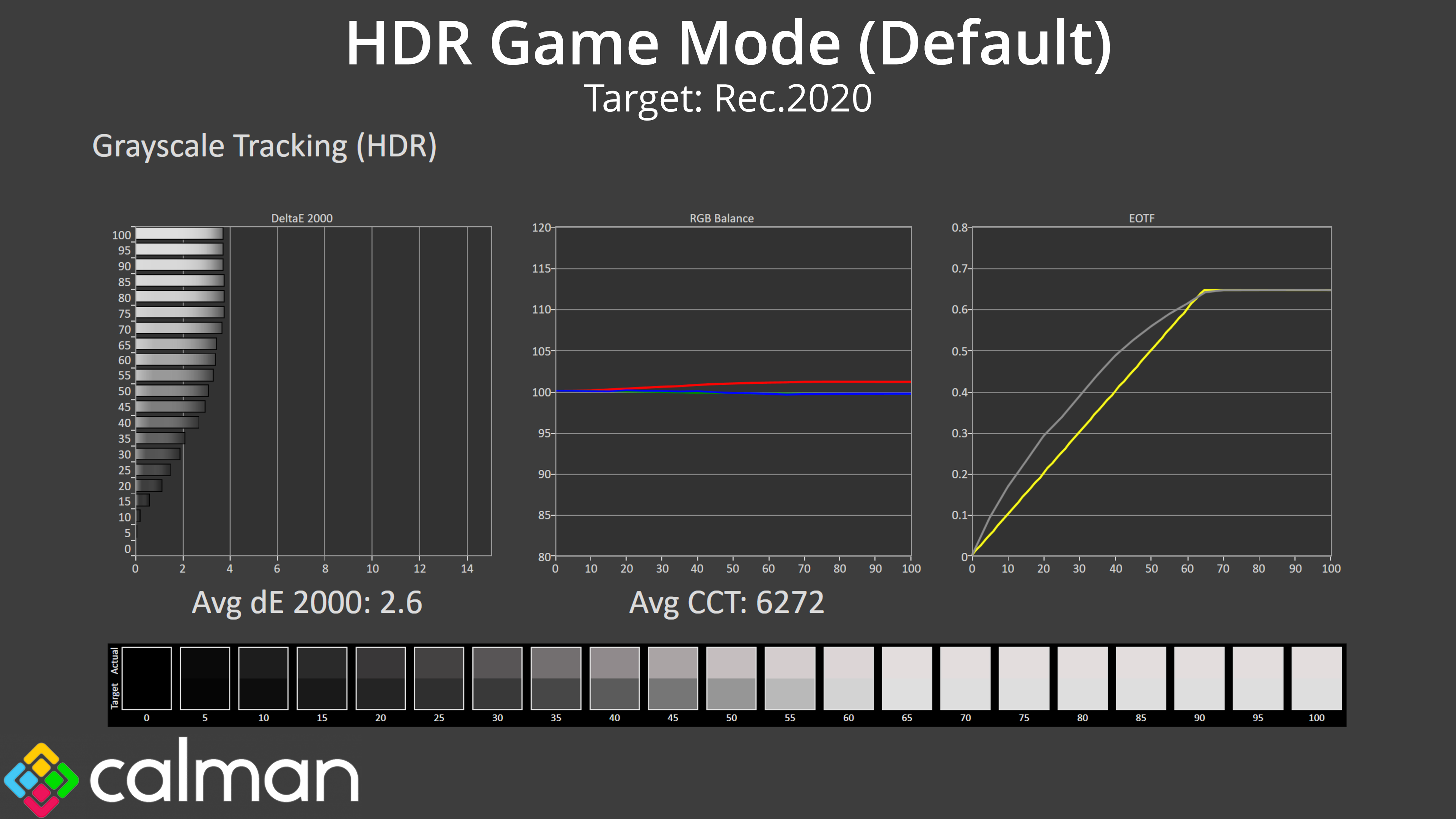 Unfortunately, the default HDR Game mode is still slightly too warm, but crucially its EOTF tracking is just too bright across the range, resulting in almost everything on screen being too bright when using HDR.