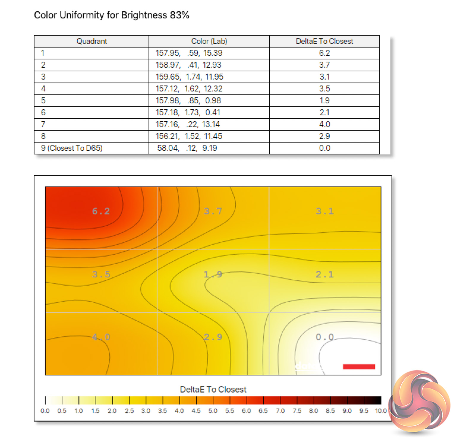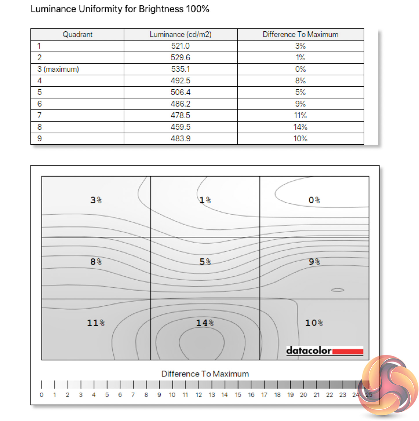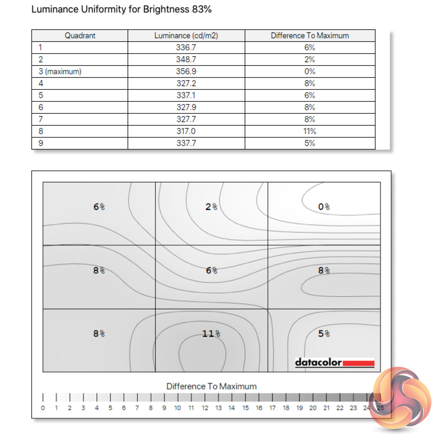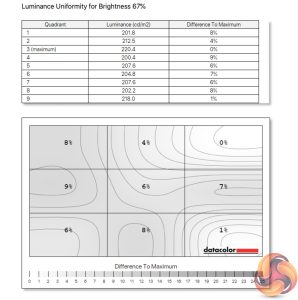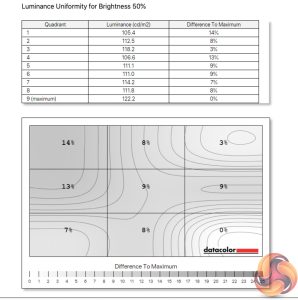 Luminance uniformity is OK too, there is some aberrance across the range of brightness levels tested, but nothing too significant.