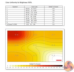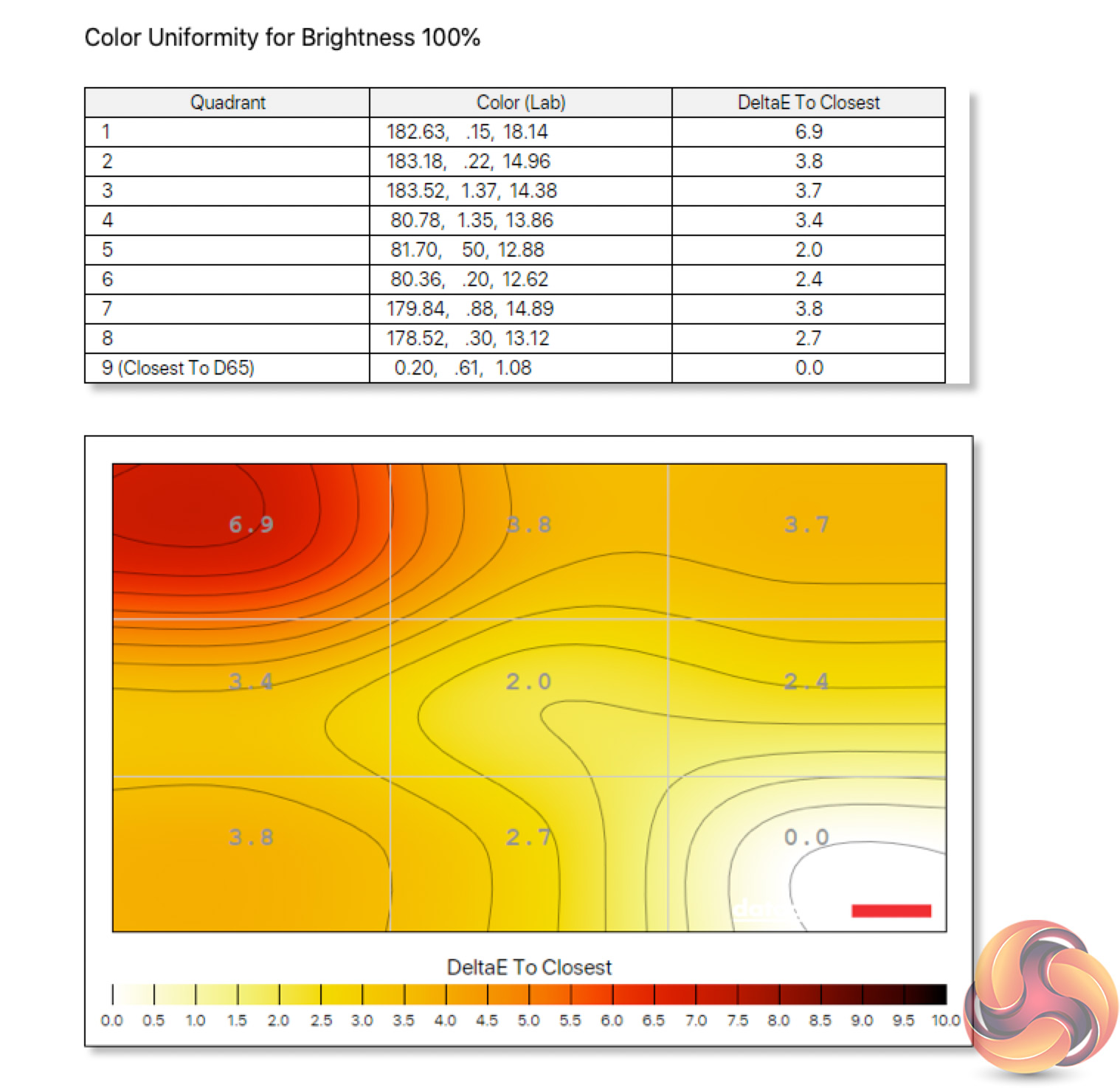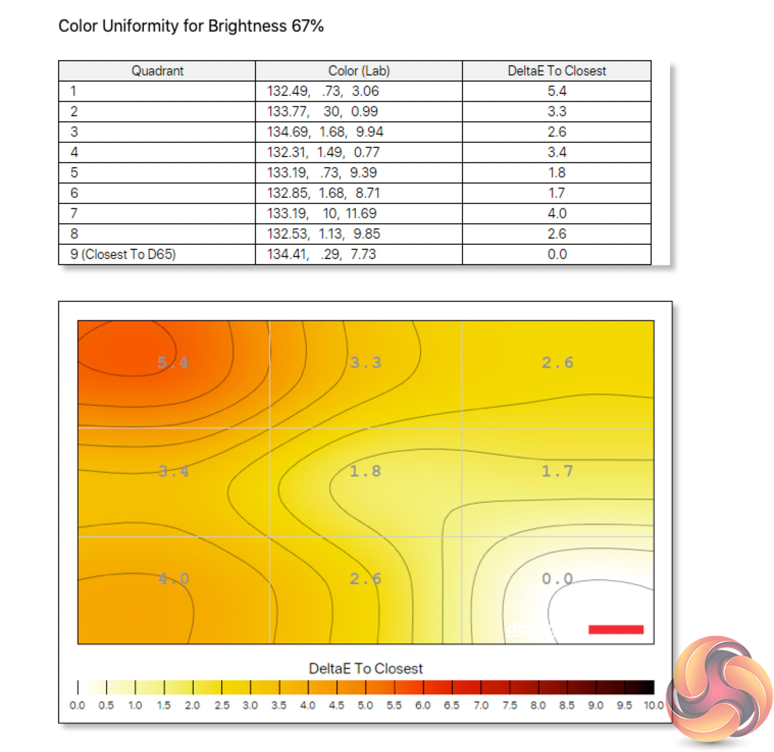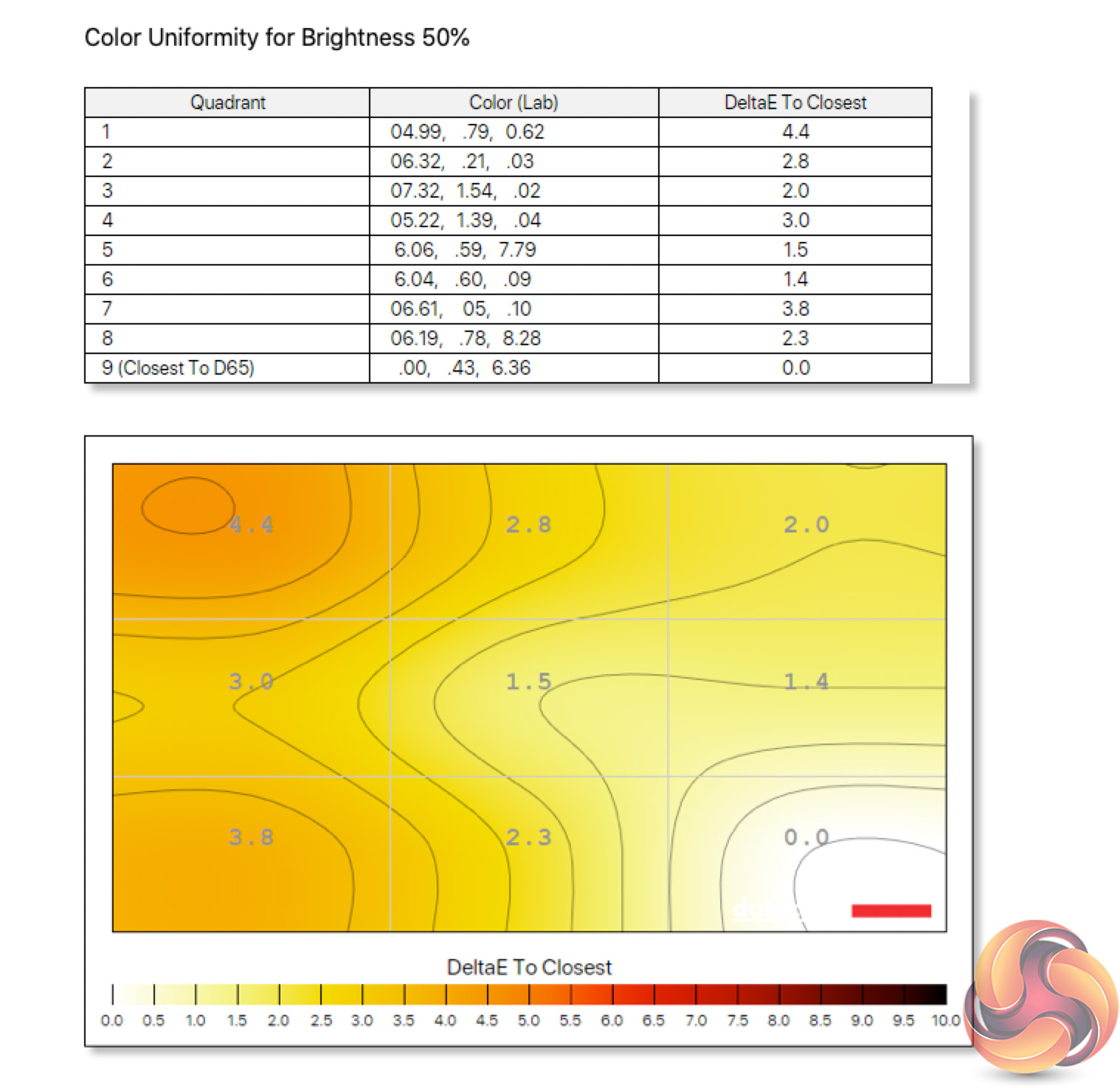 Luminance uniformity is OK too, there is some aberrance across the range of brightness levels tested, but nothing too significant.