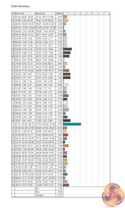 Out of the box colour accuracy is also impressively strong, with an average deltaE of just 0.73. That one blue shade is the biggest problem area, with a deltaE of 3.05 for that colour patch, but otherwise colour accuracy is very impressive.