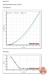 We re-ran our tests after calibration and see similarly results – gamma 2.2 still tracks perfectly, contrast is only reduced slightly to 1000:1. We do, however, see an even better average deltaE of just 0.42 which is incredibly good, though we weren't able to improve the inaccuracy of that pesky blue channel reading.