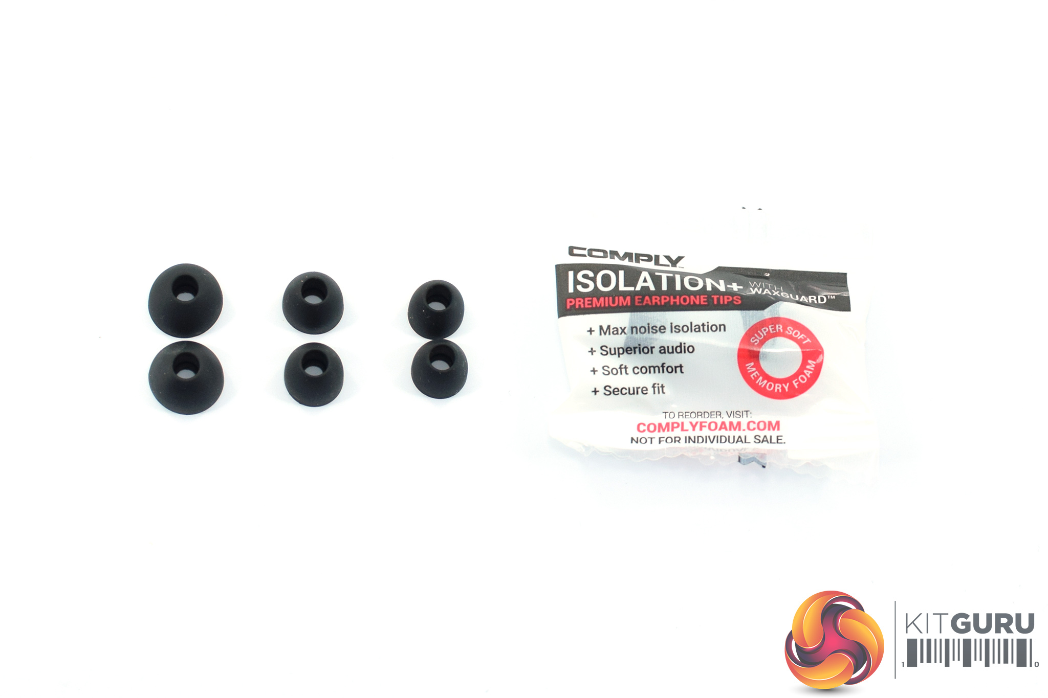 Inside the case, we find four pairs of ear tips – three of which are silicon tips, while the other pair is a set of Comply foam tips.