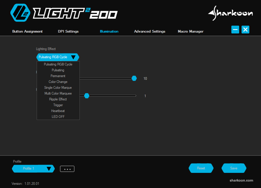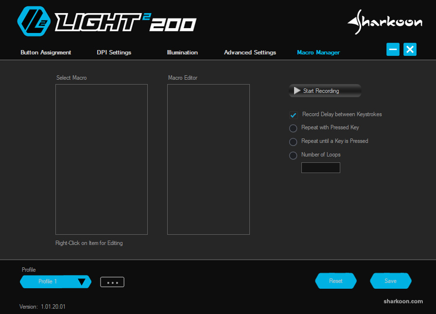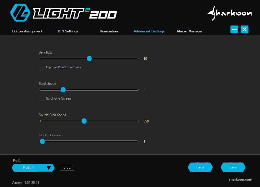 Starting with the software, this is a simple application from Sharkoon but I think it ticks most of the boxes. It's divided into 5 separate tabs:
