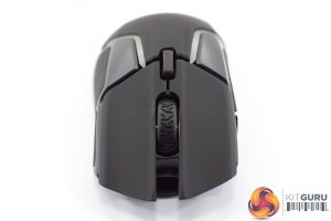At the top of the mouse, the separate mouse buttons use SteelSeries branded switches – not Omrons – that are rated for 60m clicks. The scroll wheel sits in-between the primary buttons, with a single DPI button just below that.