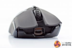 The detachable cable connects at the very front of the mouse via microUSB. However, it uses a keyed connector which slots into the gap at the front of the mouse, so a regular microUSB may not stay in. I think SteelSeries has missed a trick by not using the same connector as found on the Rival 700 – being able to use the braided cable that comes with the Rival 700 would've been a nice touch.