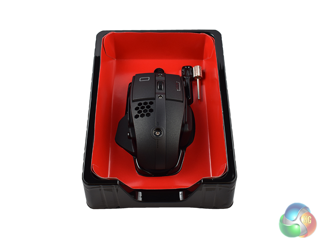 Inside, the mouse sits in a plastic mould with a special tool next to it – which we will come to later.