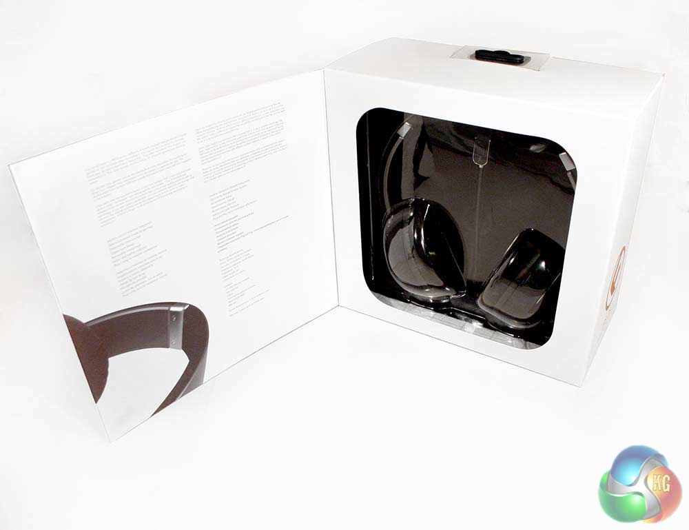It's one of those clamshell designs, so you can open it up and take a look at some more detailed specifications and the headset itself, protected by its vacuum formed plastic shell.