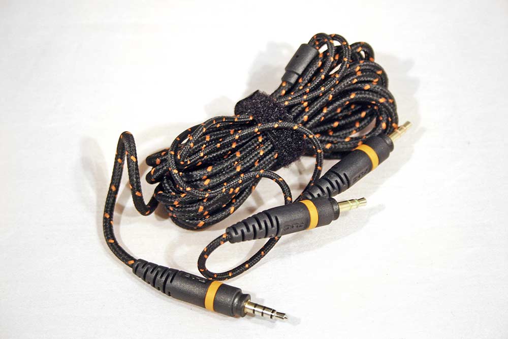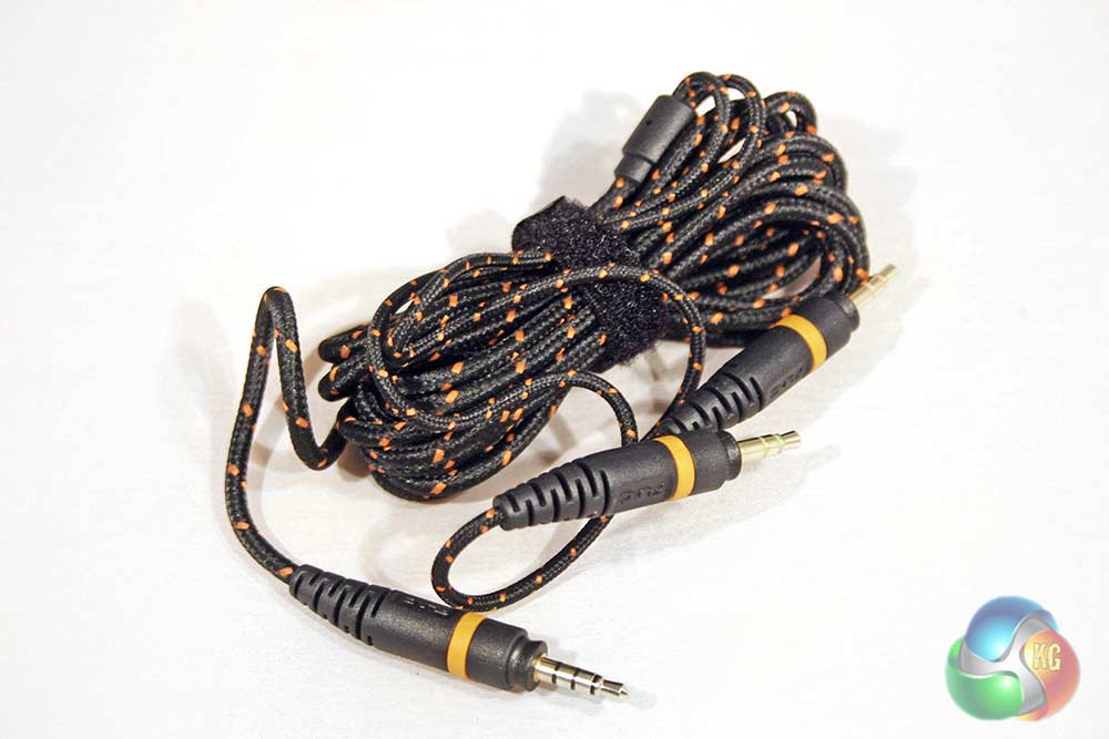 Like the mic, the audio cable that hooks your Func headset up to the PC is also detachable and comes rolled up with a little Velcro cable tidy. It splits off at the end to offer mic and audio input headers, each labelled with a little colour coded band around the connector.