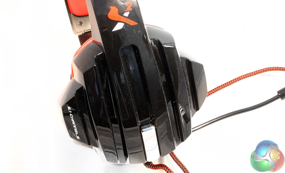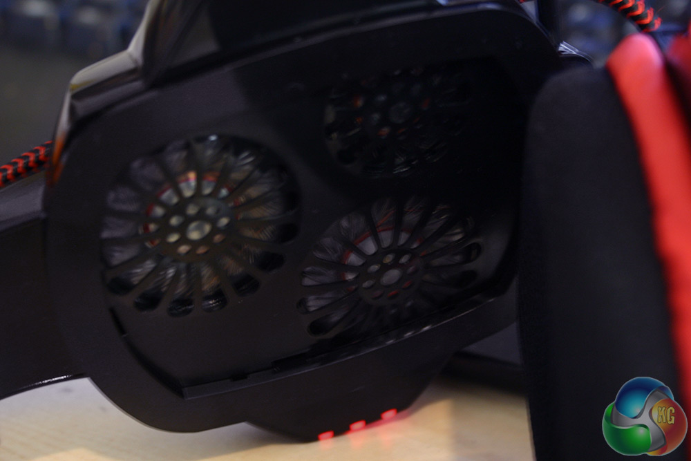 As you can see though, when you do take it off, you get real proof that this is a true surround sound headset, as you can see the separate drivers to cover the front, rear and centre channels.