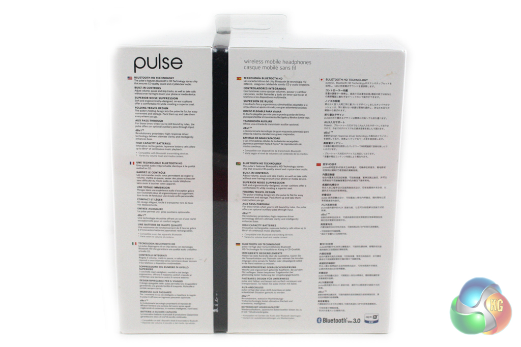 Turning it around reveals details of the features and specifications of the headset in a number of different languages. The box itself feels very good quality and should do an excellent job of protecting the headset in transit.