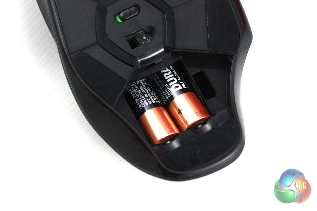 Even though this is a fairly high-end mouse, it doesn't feature a rechargeable battery. This is a little disappointing but Logitech ensure us that the two included AA batteries are good for around 250 hours in performance mode and 1440 hours in endurance mode.