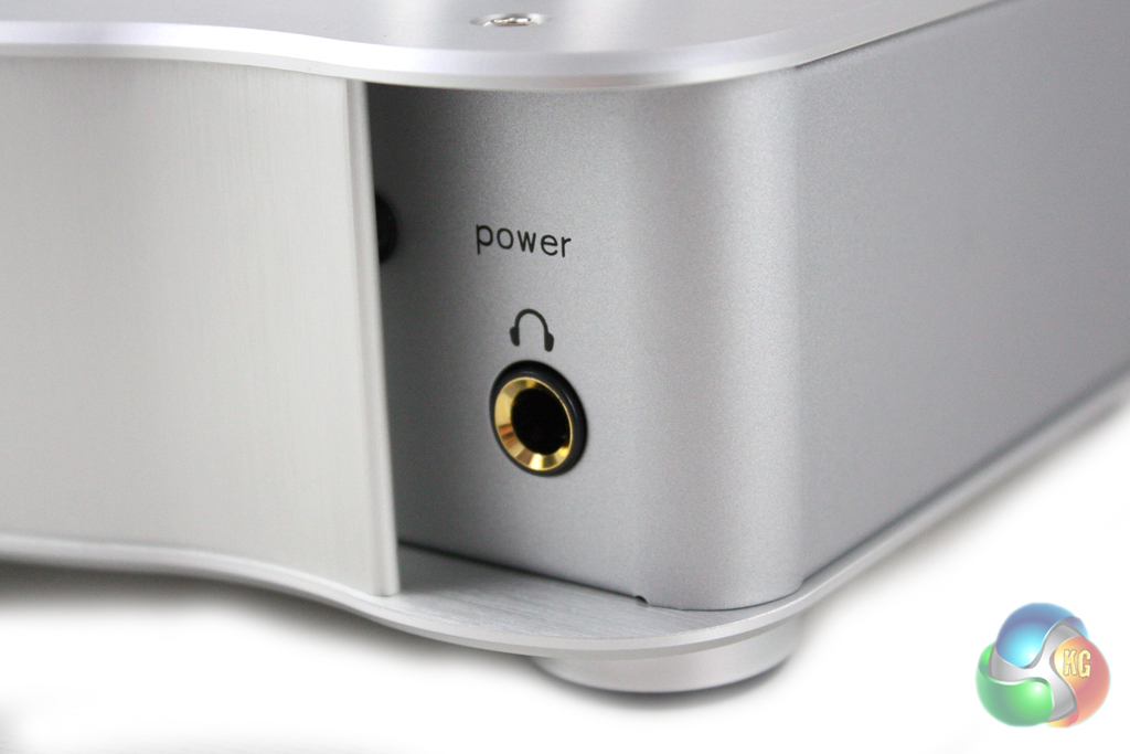 Moving around to the back of the unit we find the input and output connections. From left to right we find L and R RCA inputs, L and R RCA outputs and a DC-in connection. The RCA outputs act as a pass-through so you don’t have to unplug your headphones to use speakers. There is also a power switch on the back of the unit, although this doesn’t deactivate the pass-through.