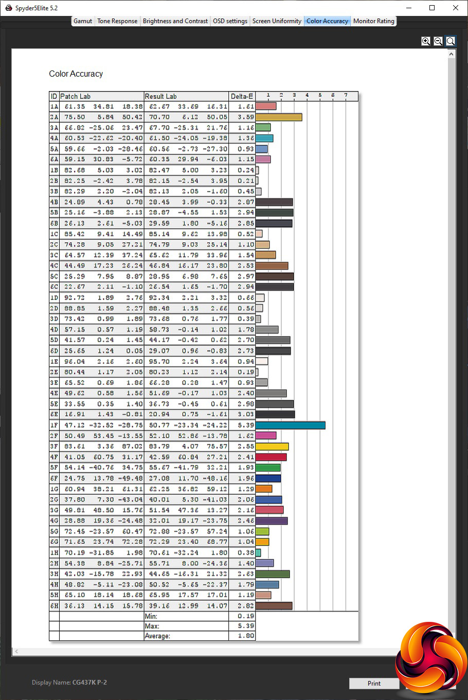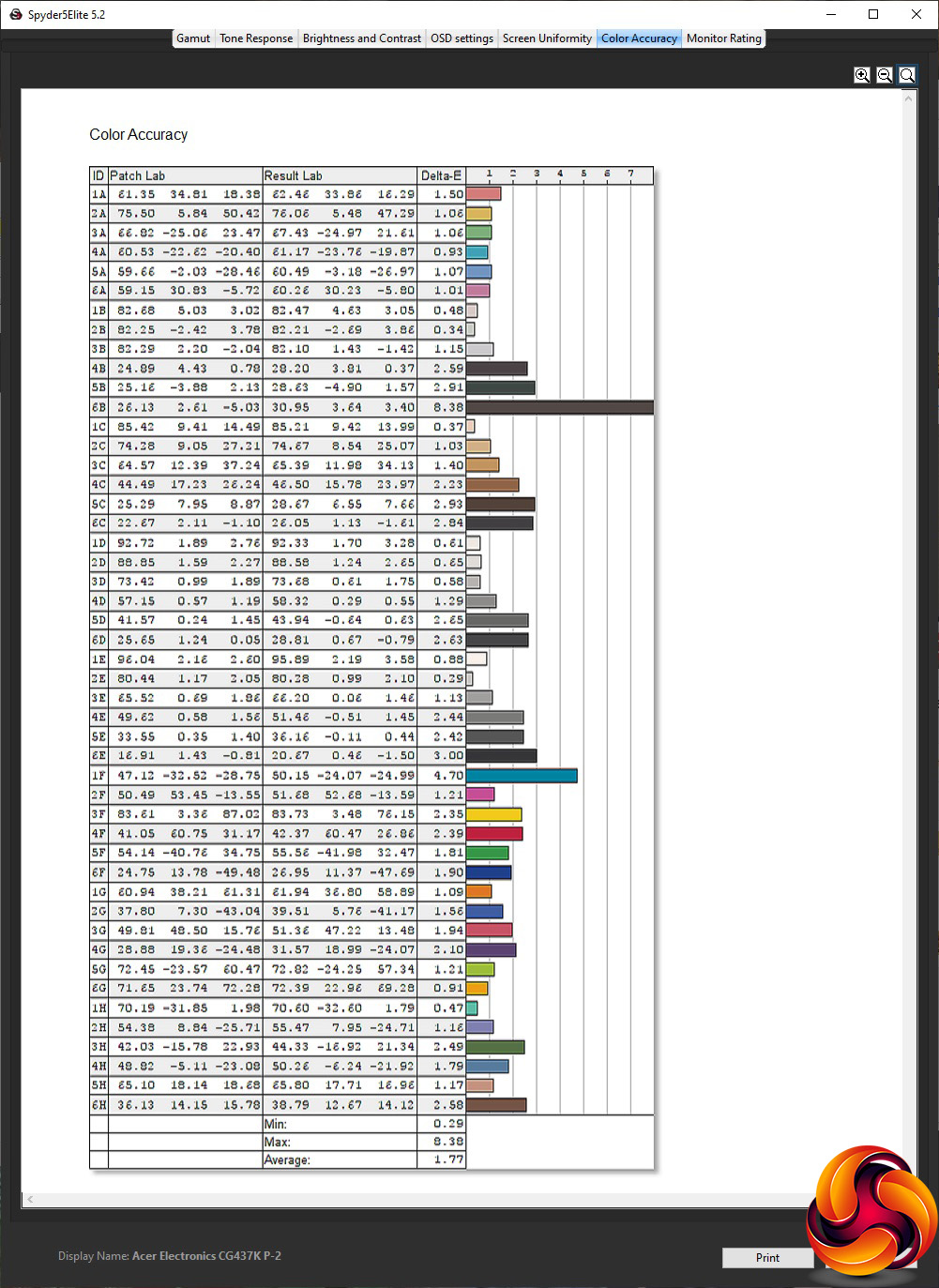 - The colour accuracy, expressed as a Delta E ratio, with a result under 3 being fine for normal use, and under 2 being great for colour-accurate design work.