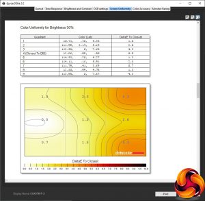 Our main test involves using a DataColor Spyder Elite 5 Colorimeter to assess a display’s image quality. The device sits on top of the screen while the software generates colour tones and patterns, which it compares against predetermined values to work out how accurate the screen is.