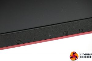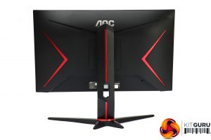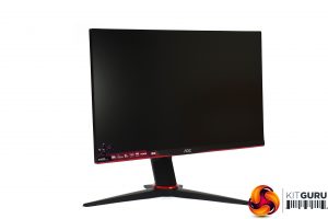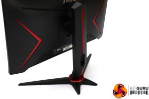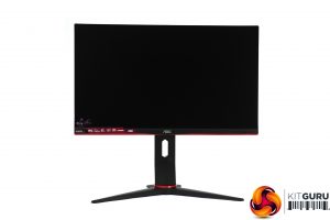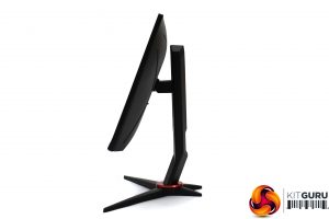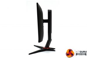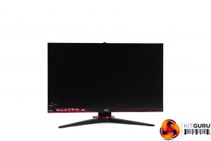 This is a good-looking monitor, with flashes of red to add some excitement to the otherwise matt black appearance. The angular stand is mean and purposeful, with a cable-tidy hole towards the bottom. The overall design makes the expected statement of serious gaming credibility.