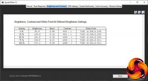 - A monitor’s contrast ratio at various brightness levels in the OSD.