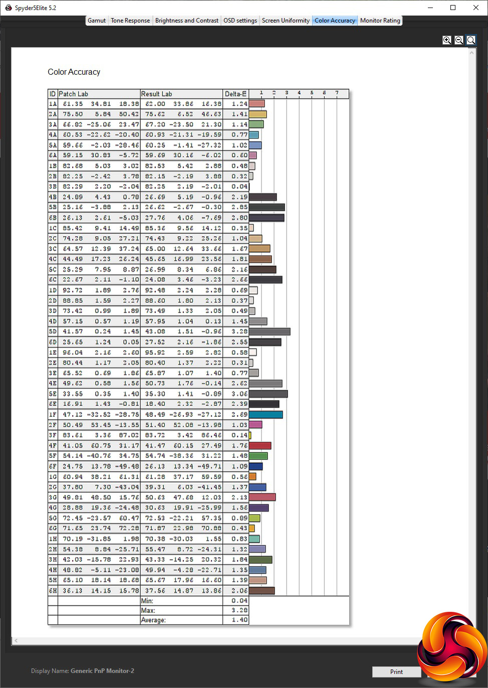 - The colour accuracy, expressed as a Delta E ratio, with a result under 3 being fine for normal use, and under 2 being great for colour-accurate design work.