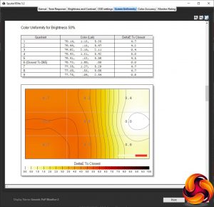 Our main test involves using a DataColor Spyder Elite 5 Colorimeter to assess a display’s image quality. The device sits on top of the screen while the software generates colour tones and patterns, which it compares against predetermined values to work out how accurate the screen is.
