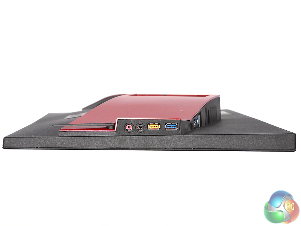 We really liked the heaphone stand that folded out of the AG271QX, so it's great to see that this is also found on the AG271QG. There are a couple of handy USB 3.0 ports placed here for easy connection, one of which supports fast charge, plus microphone input and combo microphone input/headphone output.