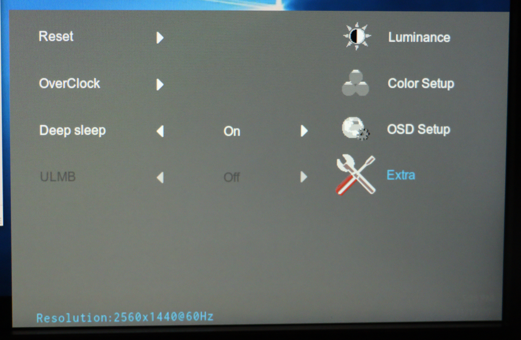 The final Extra section is where you can turn on the Overclocked 165Hz screen refresh, after which the screen will restart. There's a blur-reduction option as well (ULMB), but that didn't appear to be available at any of the settings we were using during testing.