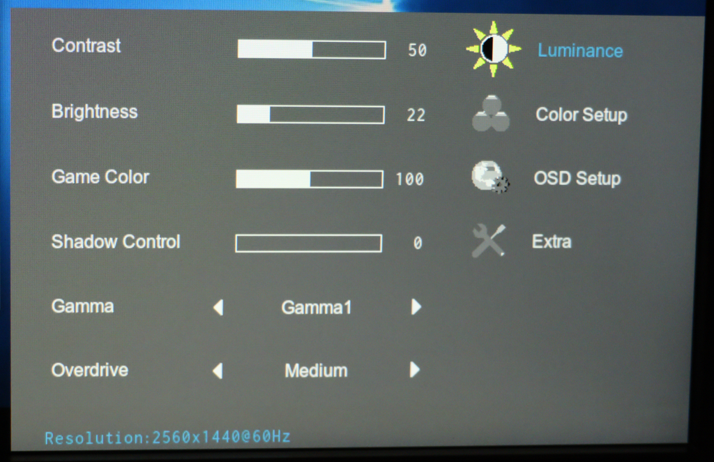 There are just four sections in the OSD, with the first being Luminance. This contains controls for Contrast, Brightness, Game Color, Shadow Control, three options for Gamma and four levels of pixel overdrive. The Game Color setting adjusts saturation, whilst Shadow Control operates in a vaguely HDR-like fashion so that detail is more visible in dark areas. This could be handy for spotting enemies hiding in the gloomier areas of a map.