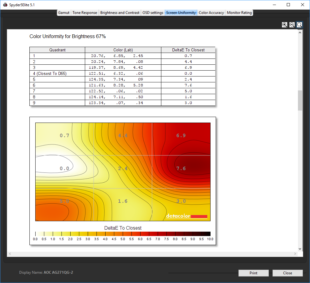 - The brightness deviation across the panel.