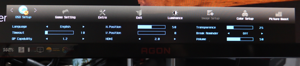 Overall, there's plenty to play with in the AGON's OSD, although virtually everything is heavily game focused. A few presets for other entertainment types, such as movies, and (shock, horror!) maybe even common work categories would not have cost any extra.