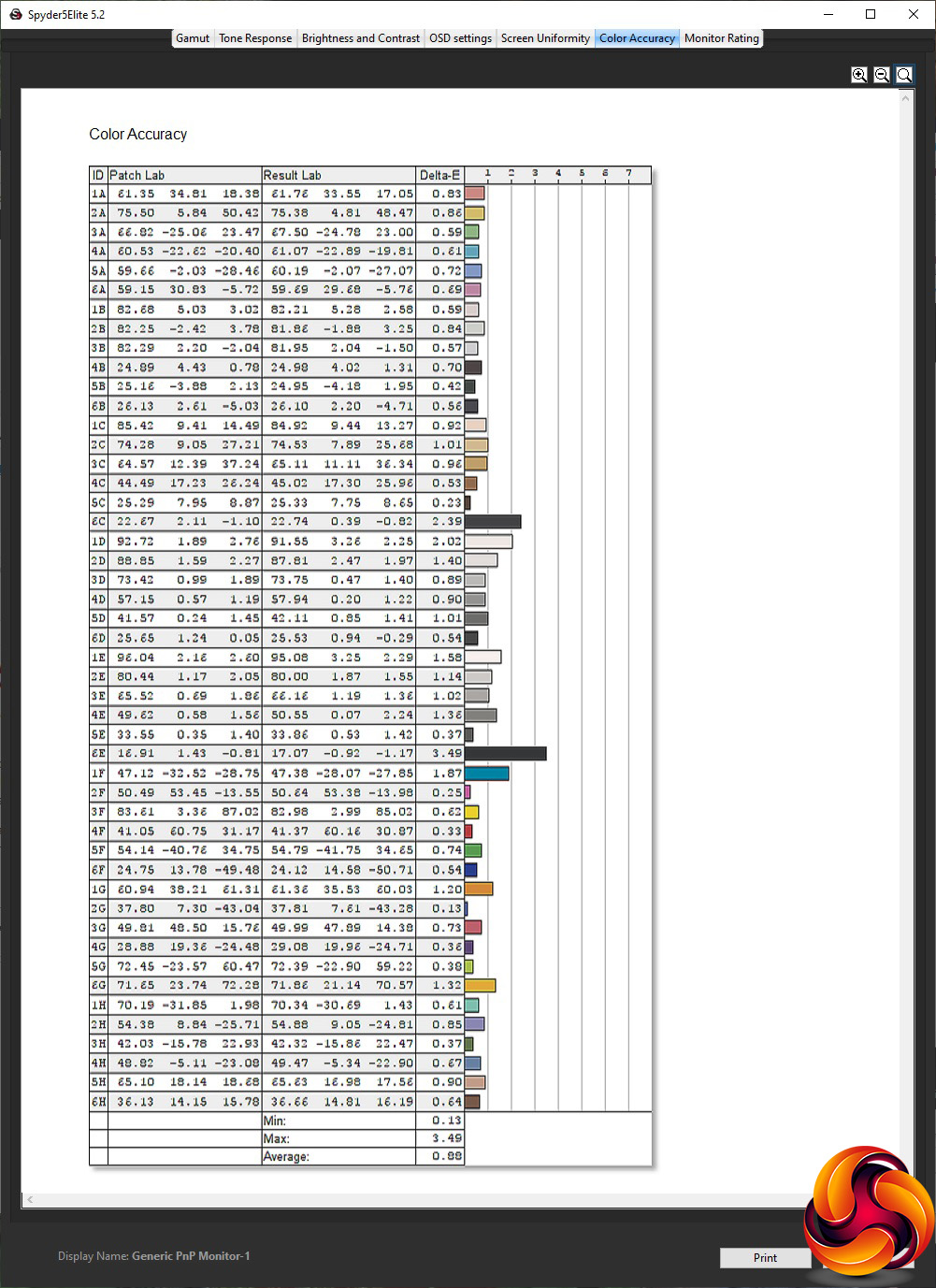 - The colour accuracy, expressed as a Delta E ratio, with a result under 3 being fine for normal use, and under 2 being great for colour-accurate design work.