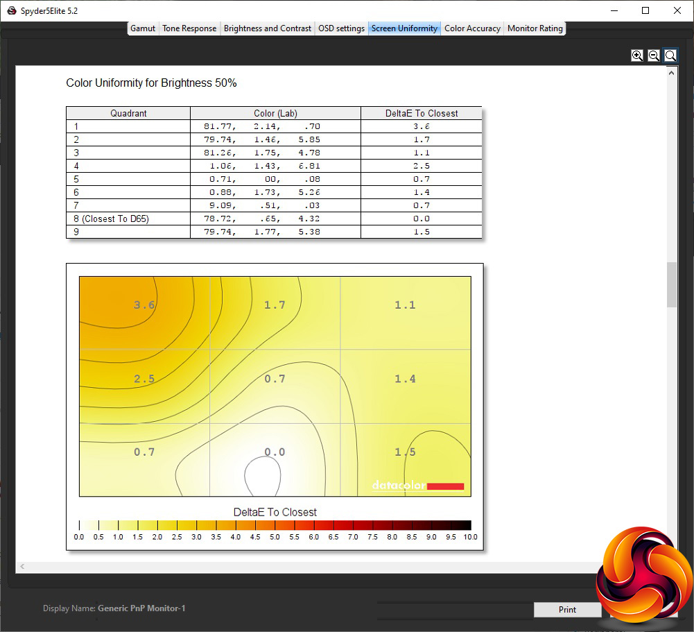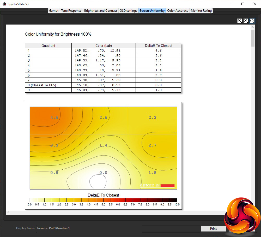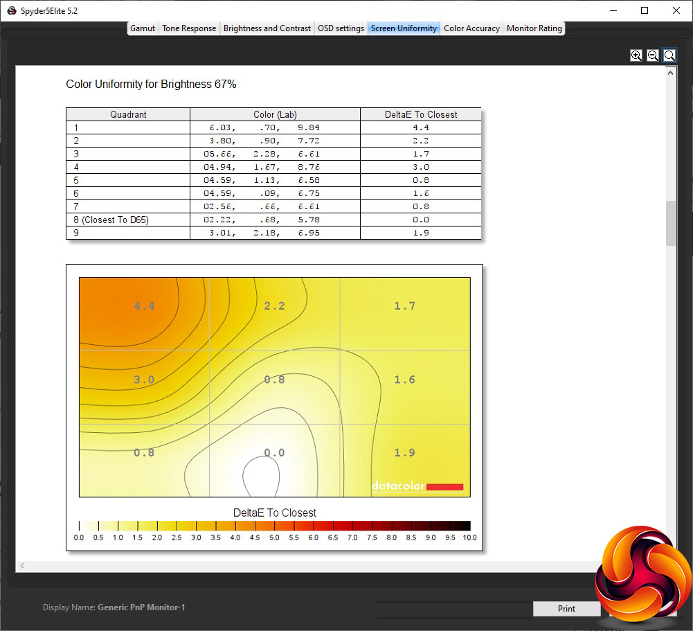 Some great brightness uniformity readings along the top two thirds, but not so good in the bottom third.
