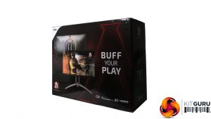 The AOC AGON AG273QZ‘s box almost feels small compared to the huge ultra widescreens we have seen so many of recently.