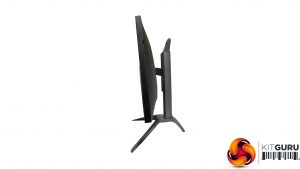 The AG273QZ has a very sober appearance like other members of the AOC AGON range. Apart from the logo flashes on the bottom of the bezel and top of the rear, it's basically black, and mostly matte black too.