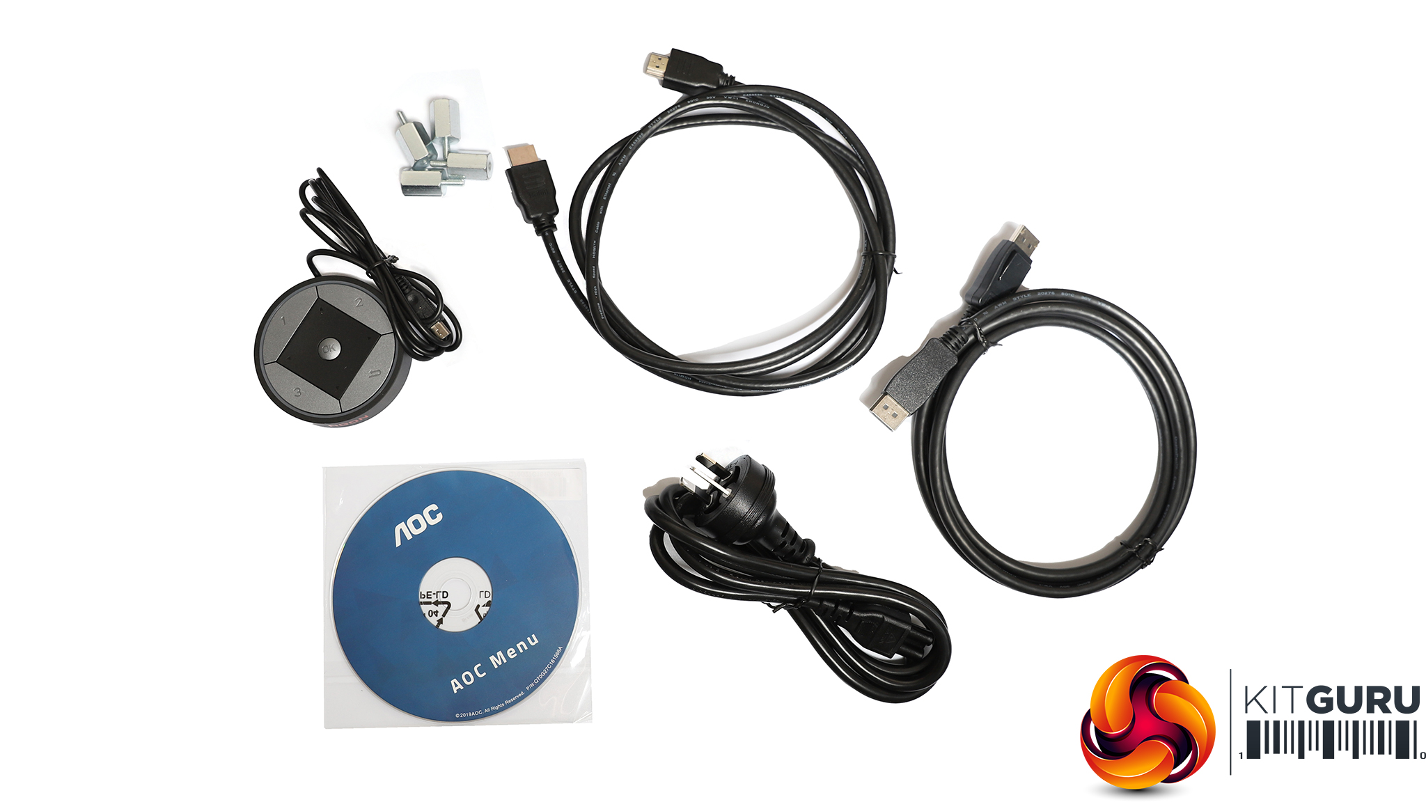 Inside the box is the usual power cord and one each HDMI and DisplayPort cables. You also get some spacers for VESA mounting, plus the separate control puck for the menu system, which will make selection options more convenient.