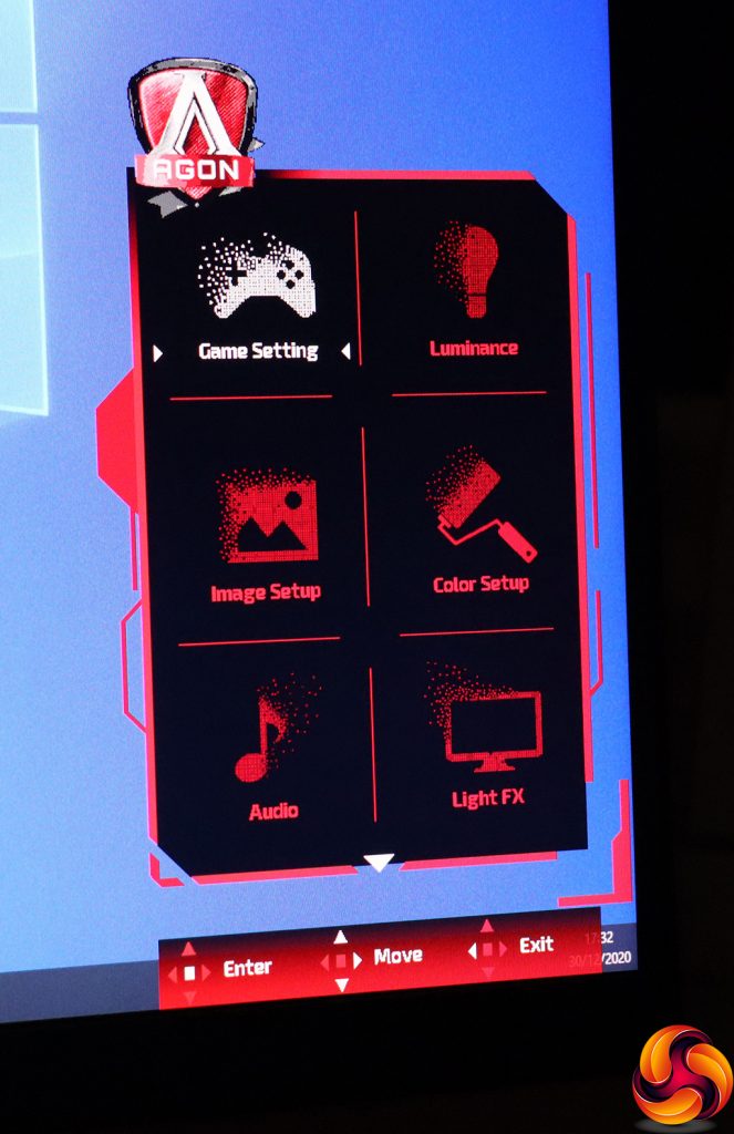 The first Game Setting option within the main menu includes the Game Modes and quite a few more options than other AOC AGON monitors we have tested recently. The Shadow Control function heightens contrast in dark areas. The Game Color option improves saturation and grey level. MBR stands for motion blur reduction, the function of which is self-explanatory.