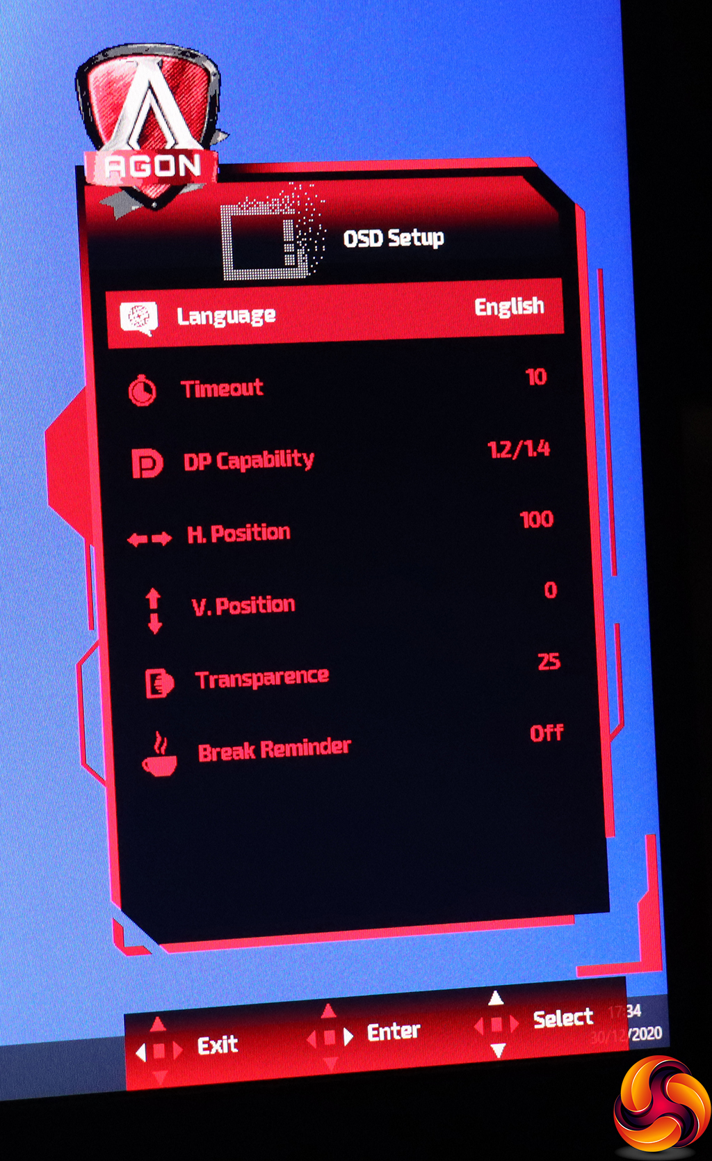 Finally, under OSD Setup you can change the way the OSD behaves including placement, transparency, timeout and language. You can also set up a break reminder, to tell you go grab some non-screen time occasionally. You can also switch the DisplayPort connections between the 1.2 and 1.4 standards, in case the latter is causing compatibility problems.