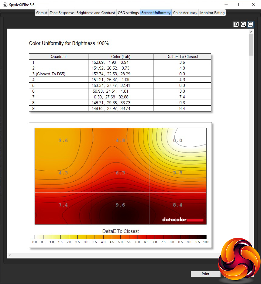 Our main test involves using a DataColor SpyderX Colorimeter to assess a display’s image quality. The device sits on top of the screen while the software generates colour tones and patterns, which it compares against predetermined values to work out how accurate the screen is.