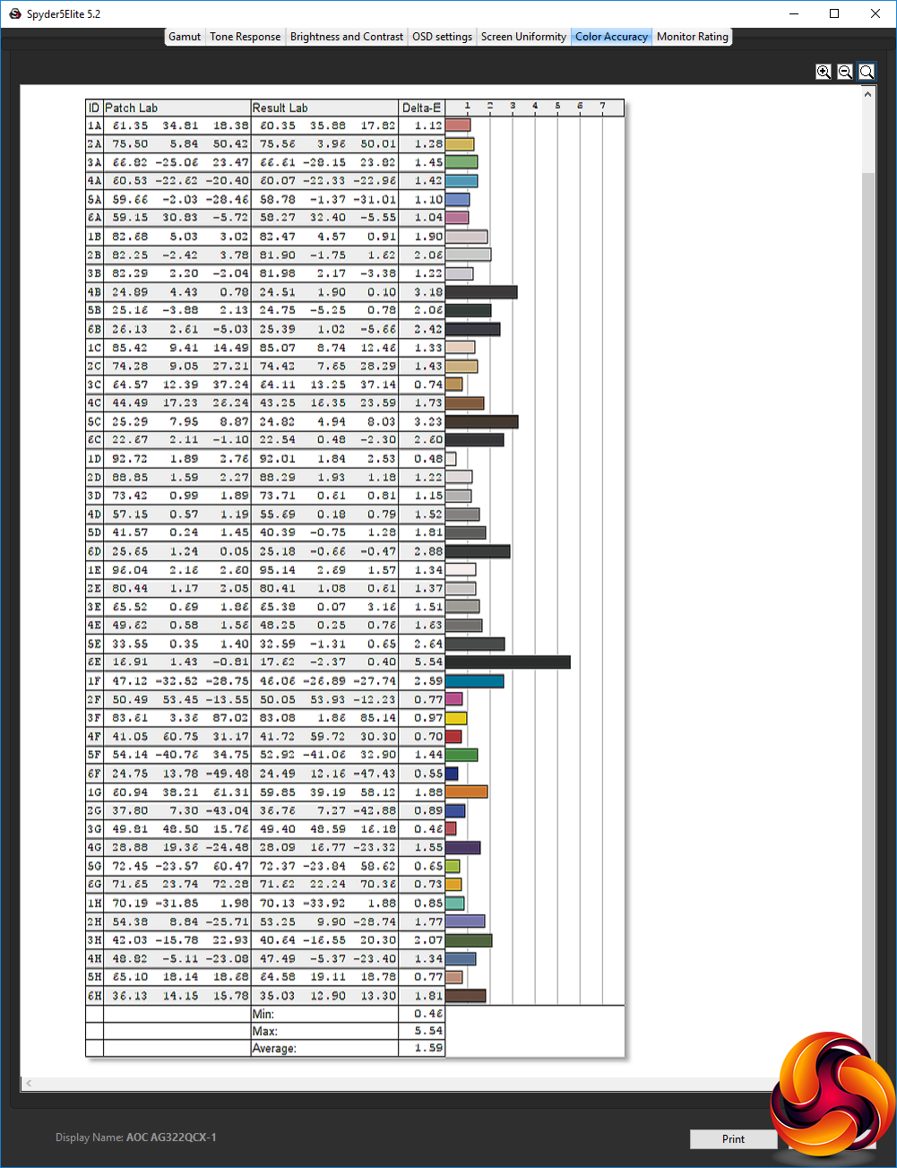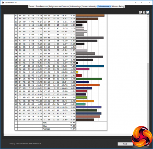 - The colour accuracy, expressed as a Delta E ratio, with a result under 3 being fine for normal use, and under 2 being great for colour-accurate design work.