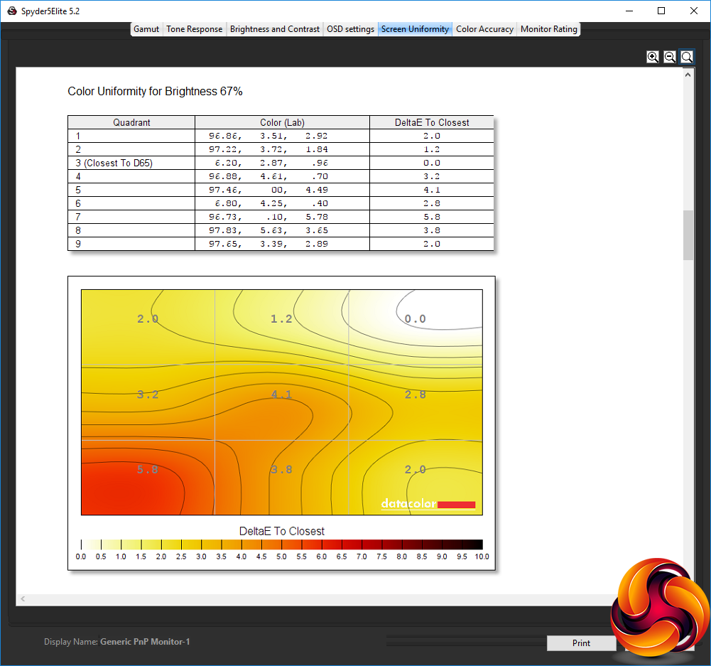 Brightness uniformity is also very good, with only the top right-hand corner going above 5 per cent variation.