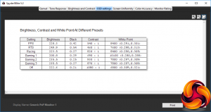 Turn all these off and you get 222.6 brightness, the highest 1,080:1 contrast, and warmest 6800K white point. Overall, we would have liked to have seen some non-gaming presets as well, just in case you actually want to do something else with your screen, like watch movies or (perish the thought) work.