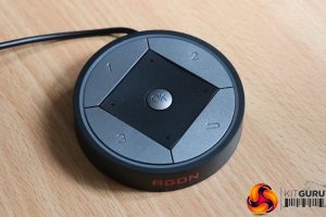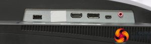 One of the DisplayPort 1.4 connections was taped up in our sample for some reason, with the second DisplayPort 1.4 the other side of the HDMI 2.0 connection. Then there is the Mini USB input for the Quick Switch puck and analog audio minijack for passing this through to your existing PC microphone input.