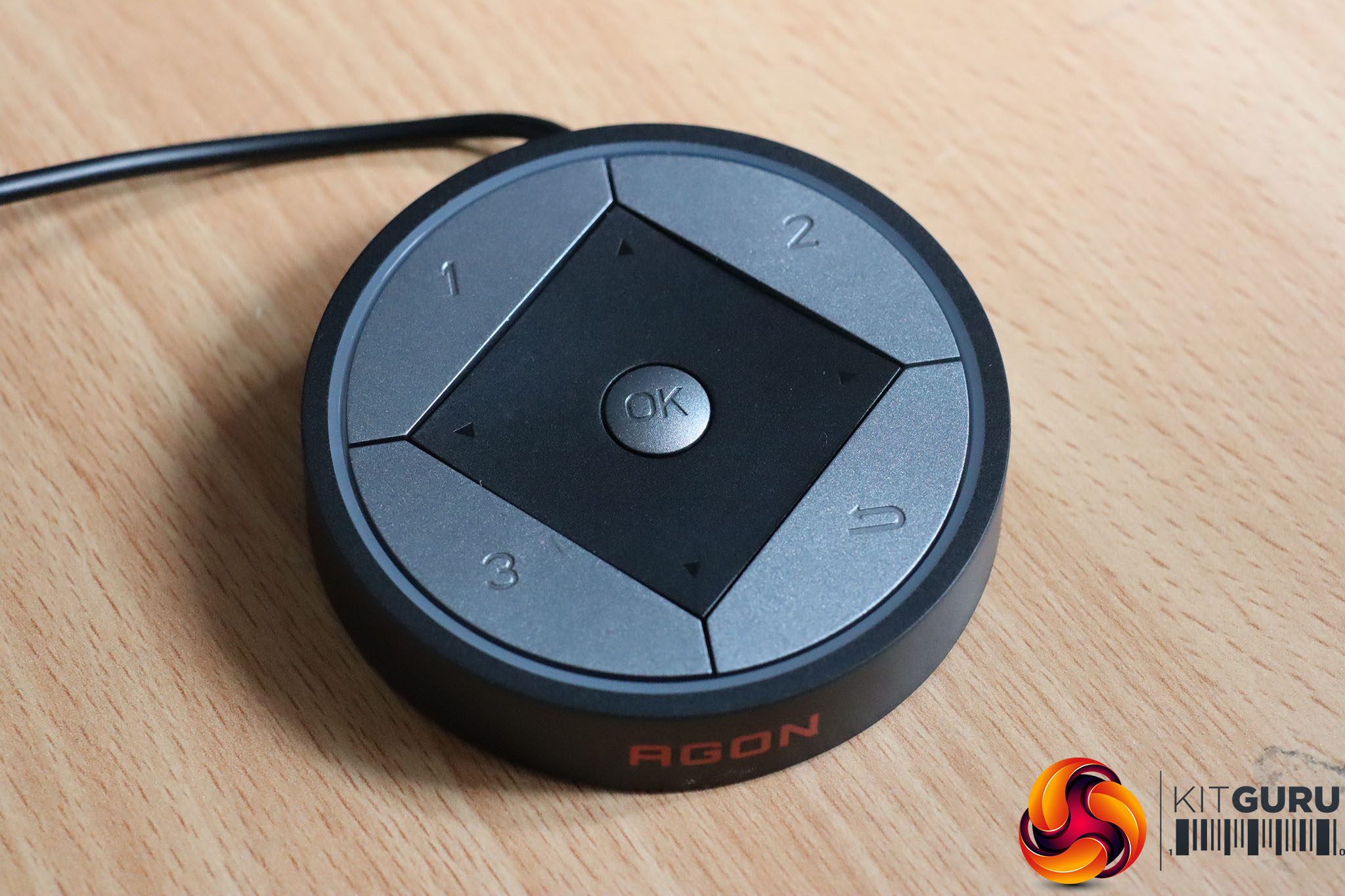The menu is controlled by a joystick placed centrally behind the AGON logo. This is more convenient than some joystick placements, which force you to fumble and reach around the rear to find them. However, even more convenient is the external control puck that AOC calls Quick Switch. This provides access to almost all the same functions as the joystick, whilst adding discrete buttons for the three custom presets.