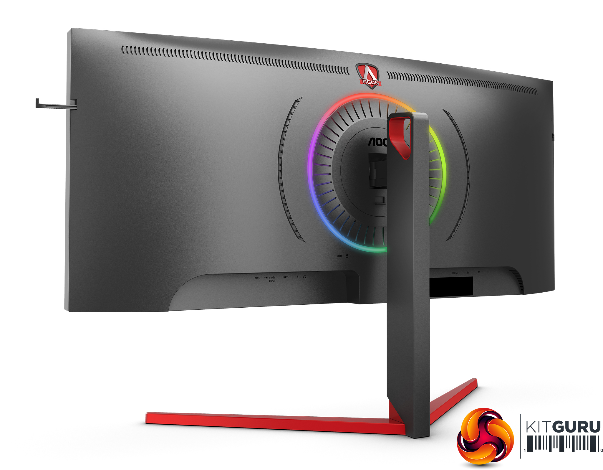 The AG353UCG is a serious-looking monitor, with a mostly black theme apart from the classy brushed-metal red of the stand base. This ties in nicely with the red of the AGON logo. The build feels really solid, too, as you would hope for a screen that costs this much.