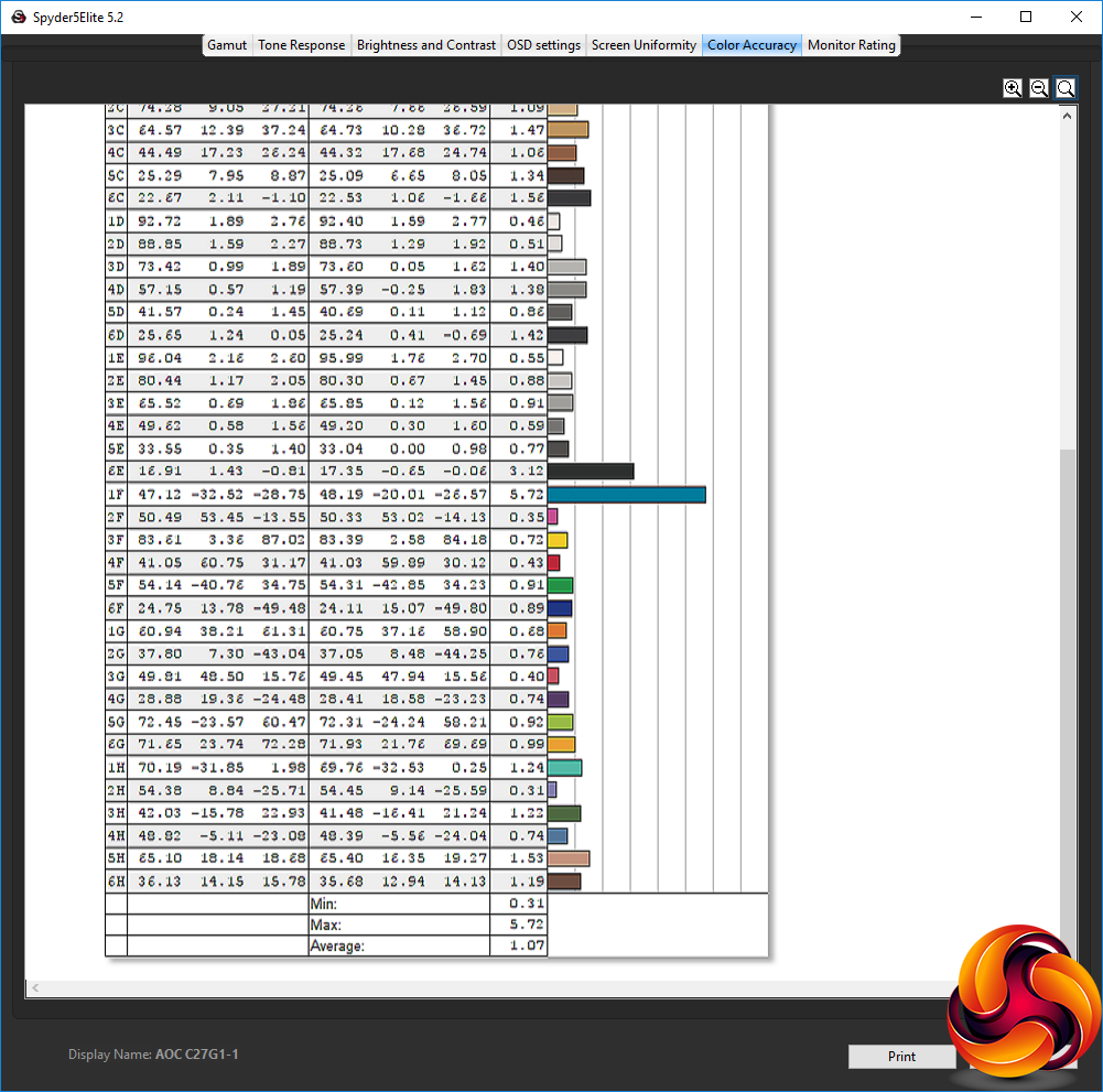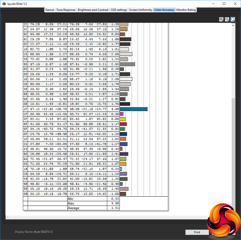 - The colour accuracy, expressed as a Delta E ratio, with a result under 3 being fine for normal use, and under 2 being great for colour-accurate design work.