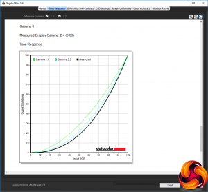 The C27G1's three gamma settings are a little strange. The default Gamma 1 corresponds to 2.1, whilst Gamma 2 is 2.0, and Gamma 3 is 2.4. We've come across this arrangement with AOC monitors before, where the gamma values are not in order of magnitude. This is also rather a narrow range.