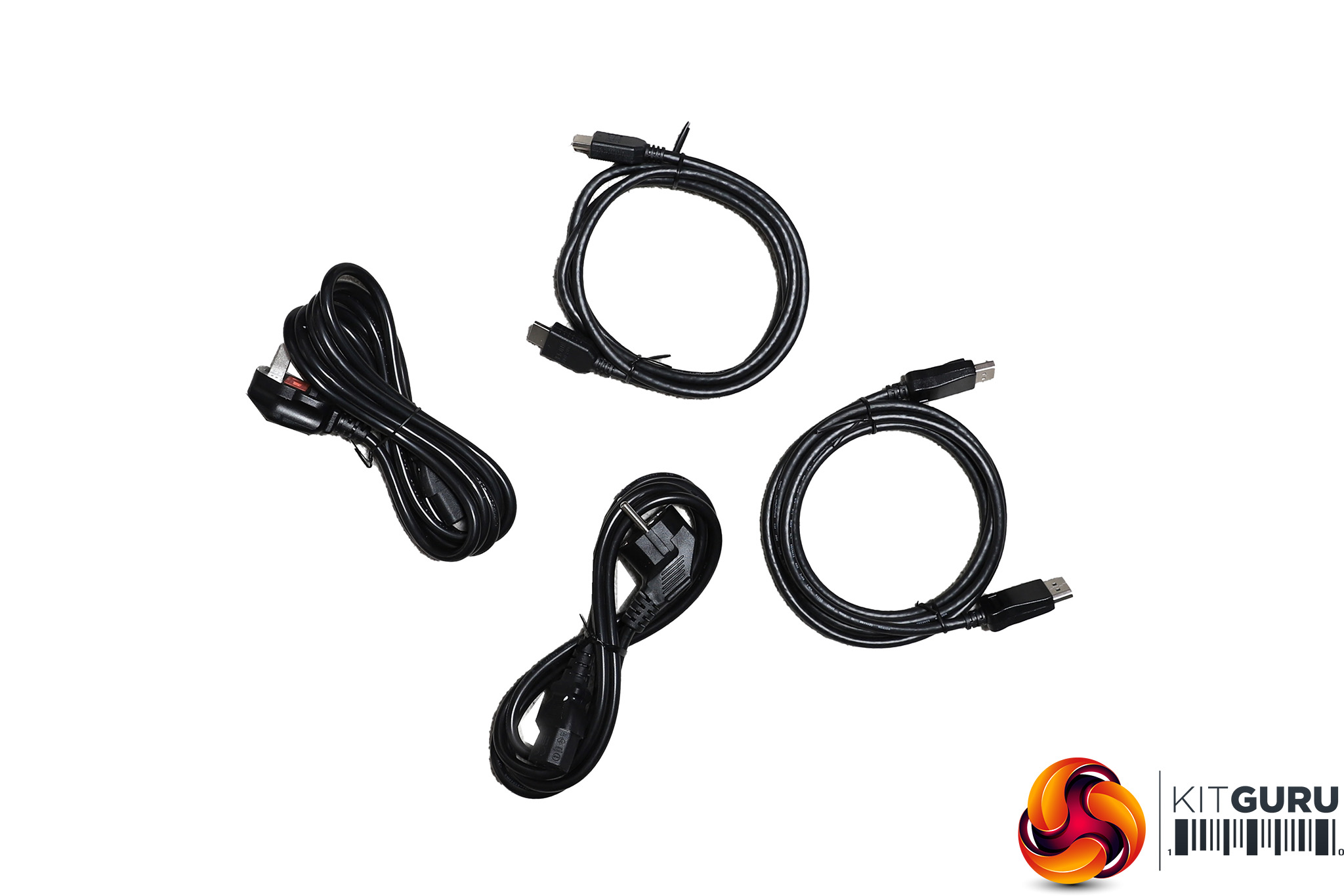 Inside are the usual power cords for both UK and EU power, as well as HDMI and DisplayPort cabling.