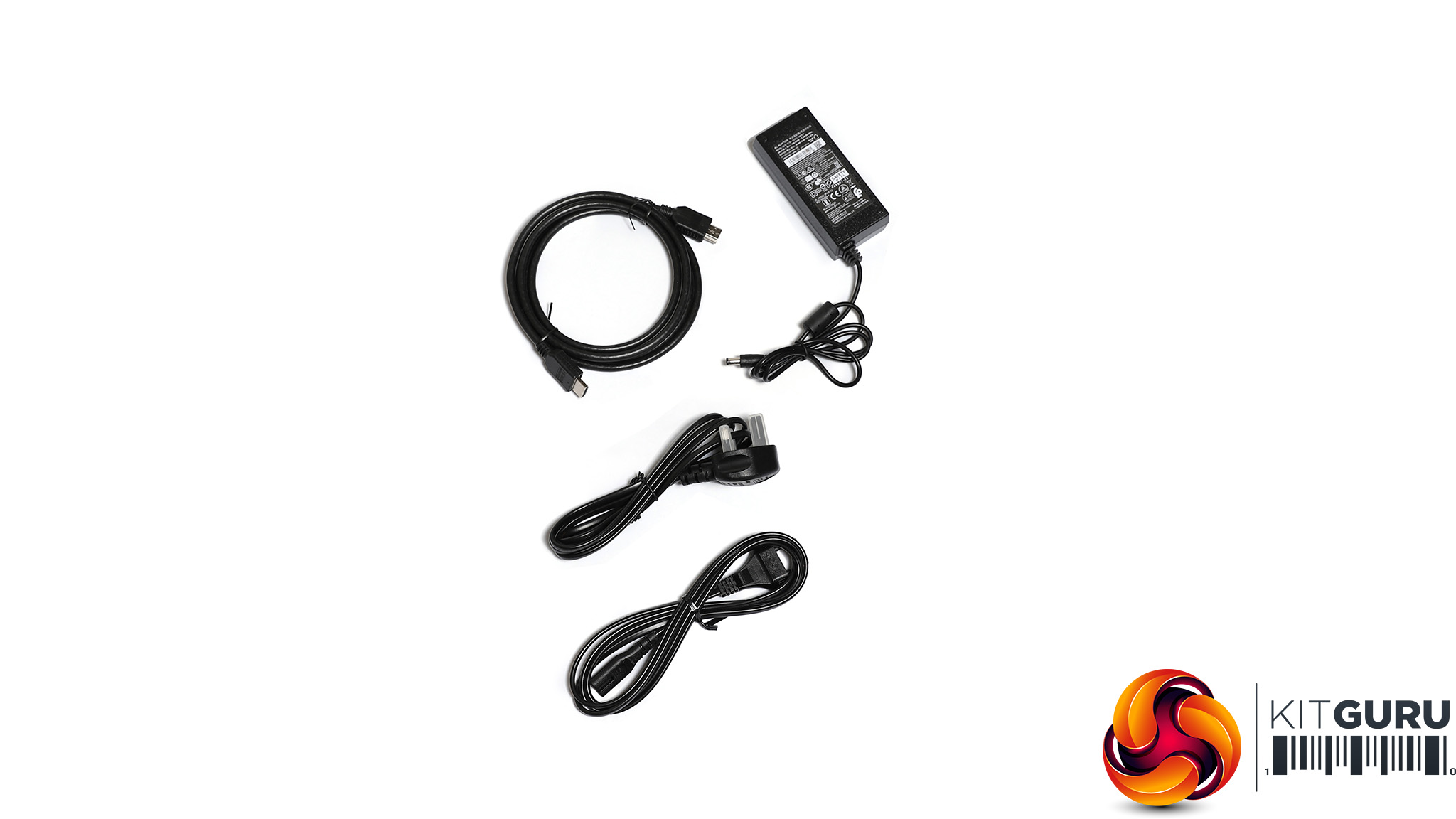 There is not an awful lot in the box, either. Just a power brick, mains cords for the UK and EU, and an HDMI cable. But no DisplayPort cable.