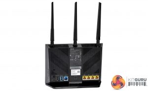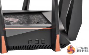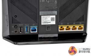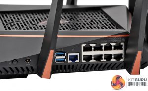 Although the GT-AC5300 has more ports than its more modest sibling, these are all still in the same place, shoehorned between two antennas. This could be an issue if you try to plug a fat USB thumbdrive into one of the two USB 3.0 ports, as these are pretty close to the antenna on the left and WAN Gigabit Ethernet port on the right.