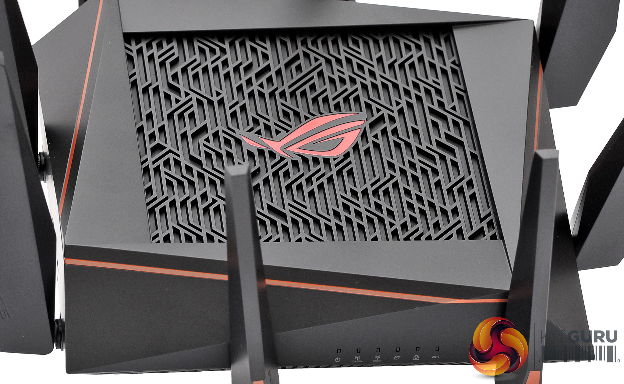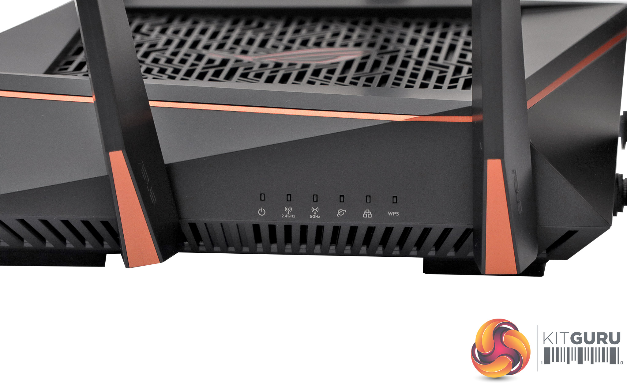 Both routers have a comprehensive array of LEDs. On the RT-AC86U these are on the front. Technically they're on the front of the GT-AC5300 as well, but it's a bit harder to be sure which is the front with this unit.