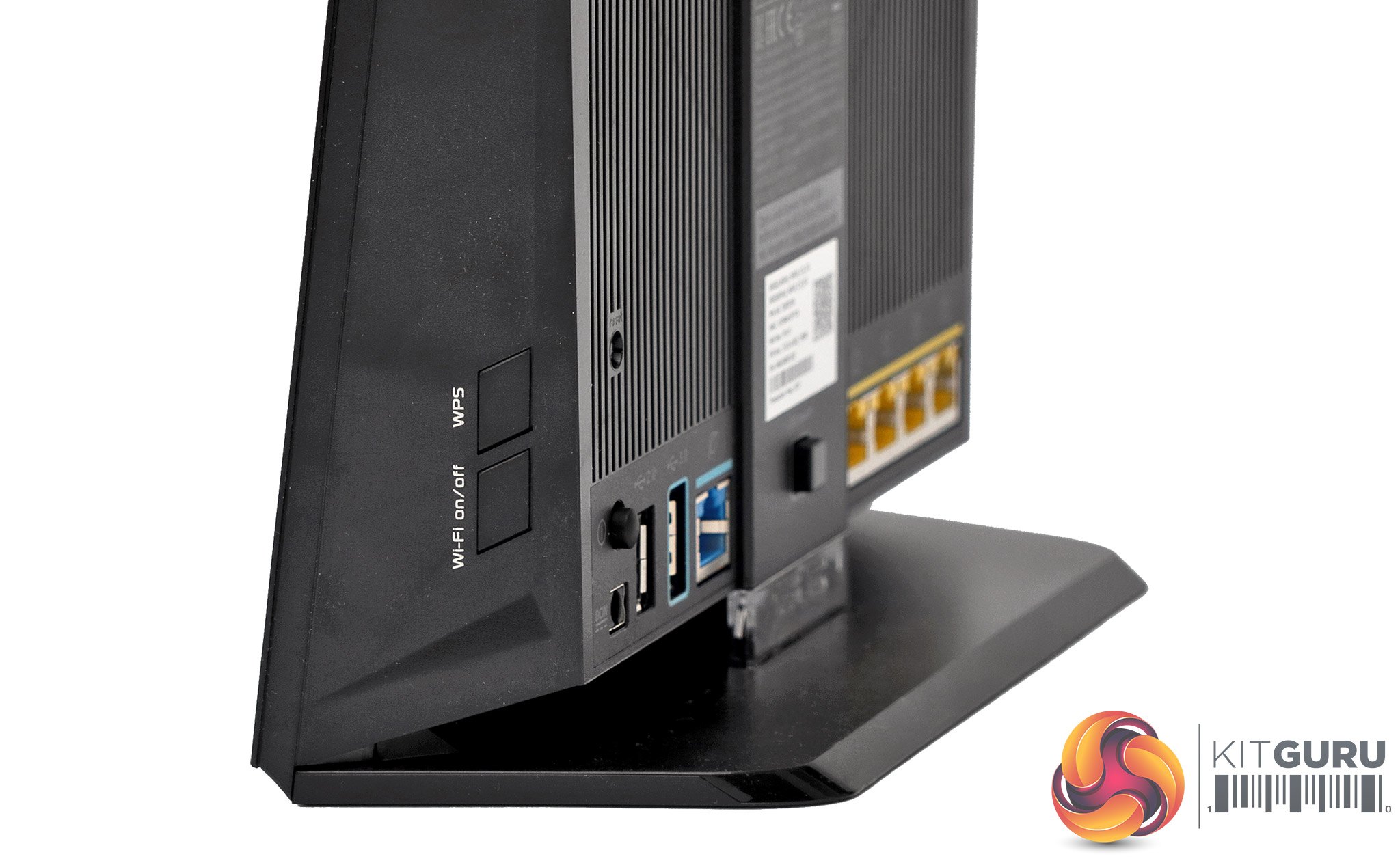 Although the GT-AC5300 has more ports than its more modest sibling, these are all still in the same place, shoehorned between two antennas. This could be an issue if you try to plug a fat USB thumbdrive into one of the two USB 3.0 ports, as these are pretty close to the antenna on the left and WAN Gigabit Ethernet port on the right.